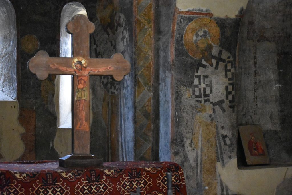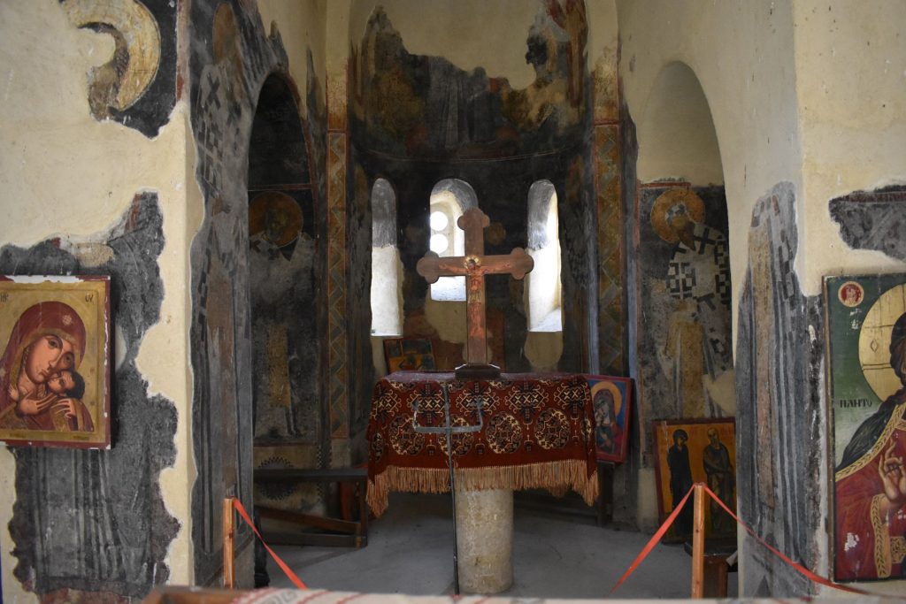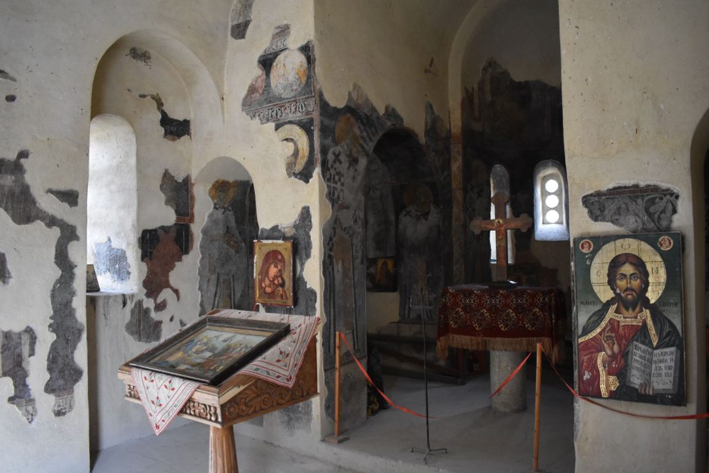 Южната арка над вратата и прозореца има два малки засводени прозореца. В предабсидното пространство има два пиластъра и две четвъртити колони, малки арки: три с посока север-юг и две с посока изток-запад. Олтарът е замислен като отделно цяло. Две издължени стени пробити с проход, го разделят на три части – бема, протесис и дяконикон. Олтарната част има три ниши. Две от ляво и една от дясно. Абсидата отвън, отдолу до горе е петостранна с разни дължини на страните, а от вътре, първият етаж-правоъгълна, ворият етаж – полукръгла с три засводени прозореца. Наосът и притвора са осветявани освен чрез купола и чрез четири прозореца в северната страна. Влизането на богомолците е ставало чрез дървена стълба през входа на притвора.