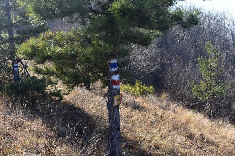 Едната група освежи и положи нова червена маркировка до връх Мараулника (част от Международен маршрут Е8), а оттам, връщайки се на югоизток освежихме и положихме синя маркировка до връх „Сини връх“, като отворихме и нов заход към върха. До момента мястото около пирамидата на самия връх е доста обрасло и тази ниска растителност в съчетание с липсата на гледки са спомогнали този най-висок връх в община Асеновград да бъде почти забравен като дестинация за пешеходни преходи. С маркирането на заход и почистването към върха вече има по приятни възможности за посещение на това място. Групата на местност „Юрта“ в началото на маркирането