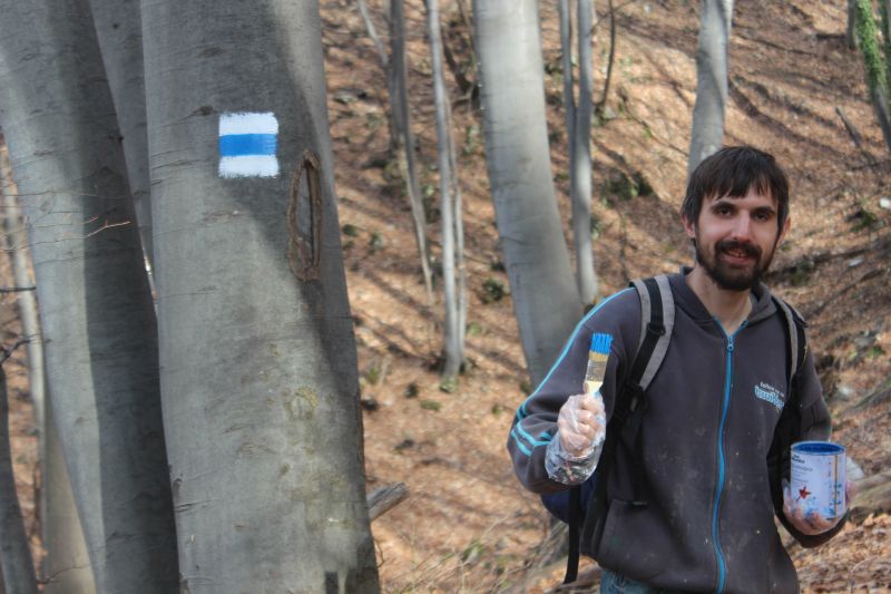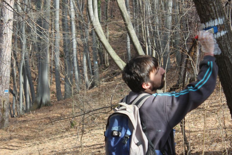 Днес маркирахме отсечката от село Бачково до Гонда вода, част от годишната програма за маркиране на Сдружение „Устремени“. За 8 часа, в рамките на 3.8 км положихме над 300 нови марки в син цвят.