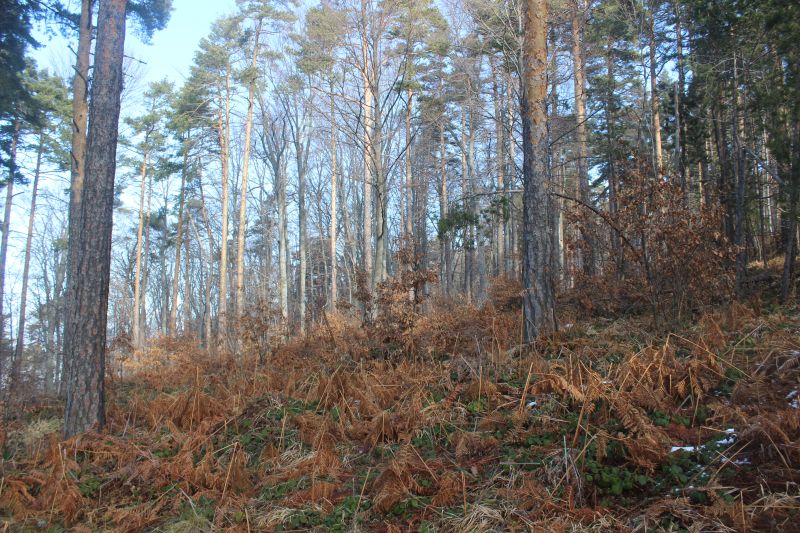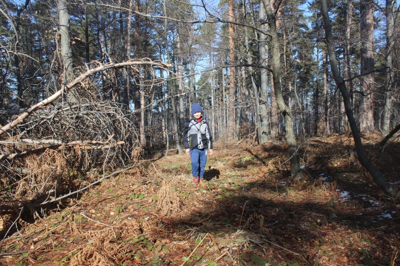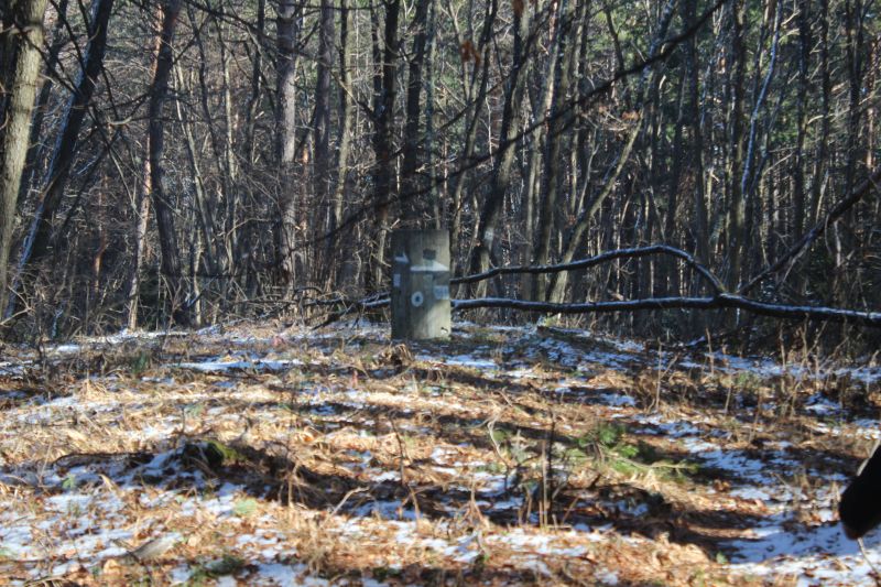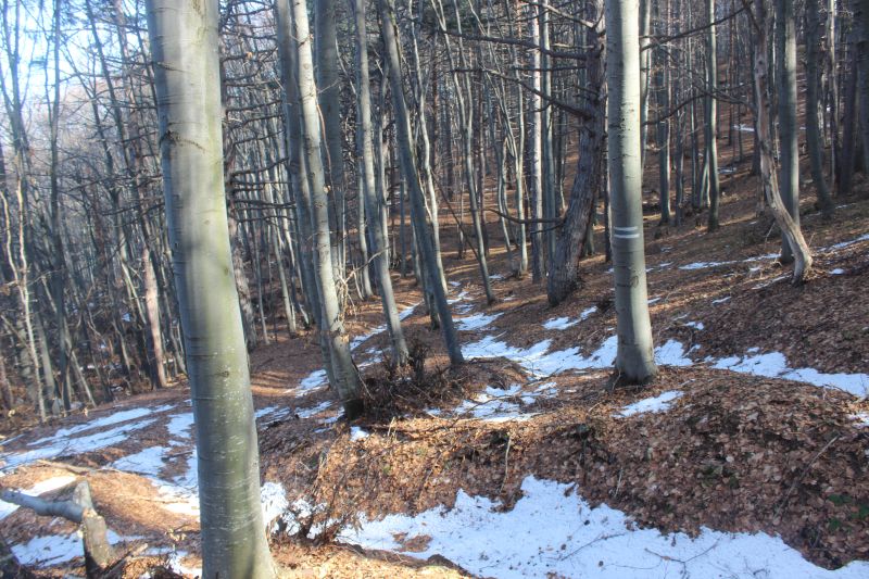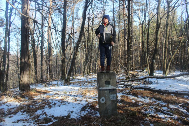 След като маркирахме отсечката, се изкачихме на връх Руен. Като цяло върхът е обрасъл с гора и не предлага гледка, но все пак е добре да се качим и да заснемем намиращата се горе циментова пирамида.