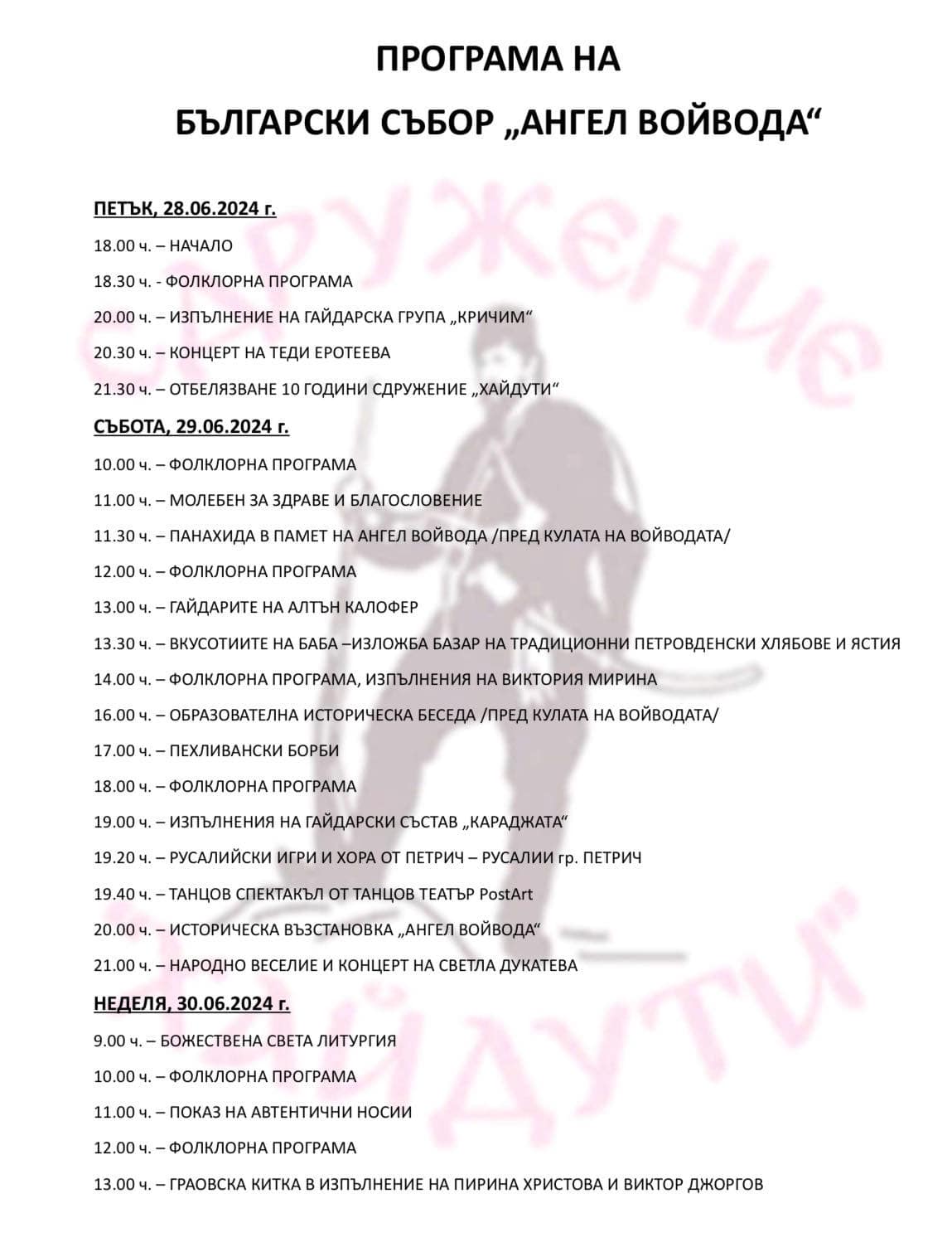 За участие във възстановка “Ангел войвода”: +359 88 8711820 – Даниел Карабельов.