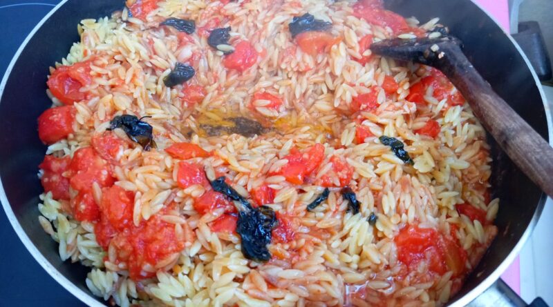 Домашни рецепти – Арпа фиде с чесън, домати и босилеково олио