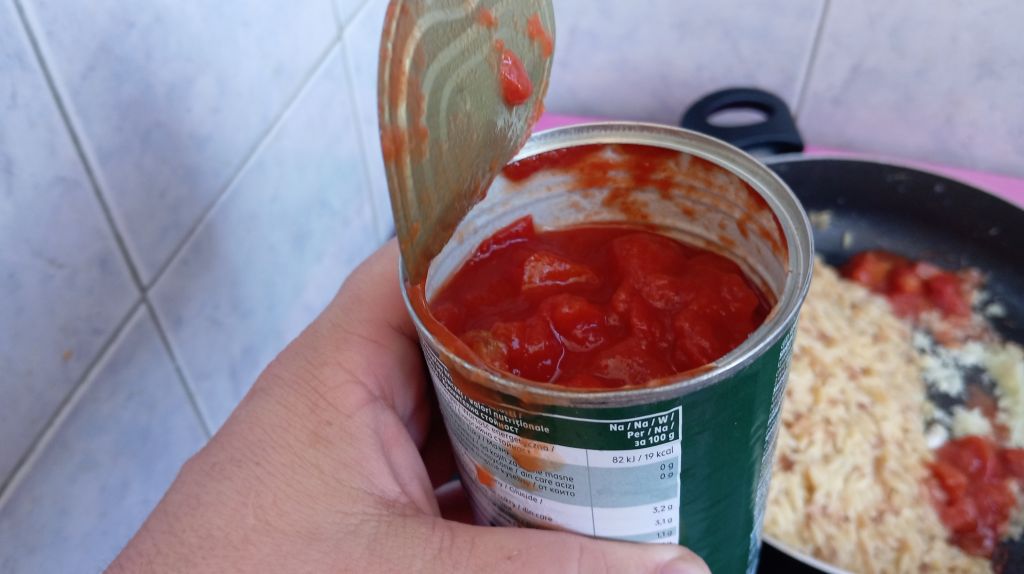 Запържваме 1 пакет (500 гр.) в малко загрято олио. Добавяме сол и малко червен пипер. След като арпата се запържи я отдръпваме в единия край на котлона. В празния край с преса смачкваме и добавяме 5-6 големи скилидки чесън. Запържваме чесновата каша, след което добавяме една консерва домати. Смесваме ги, оставяме ги да поврят малко заедно, след което смесваме арпа фидето с доматите и чесъна. Добавяме 200 ml. гореща вода, слагаме капак, намаляме печката и оставяме за около 10 мин на бавен огън.