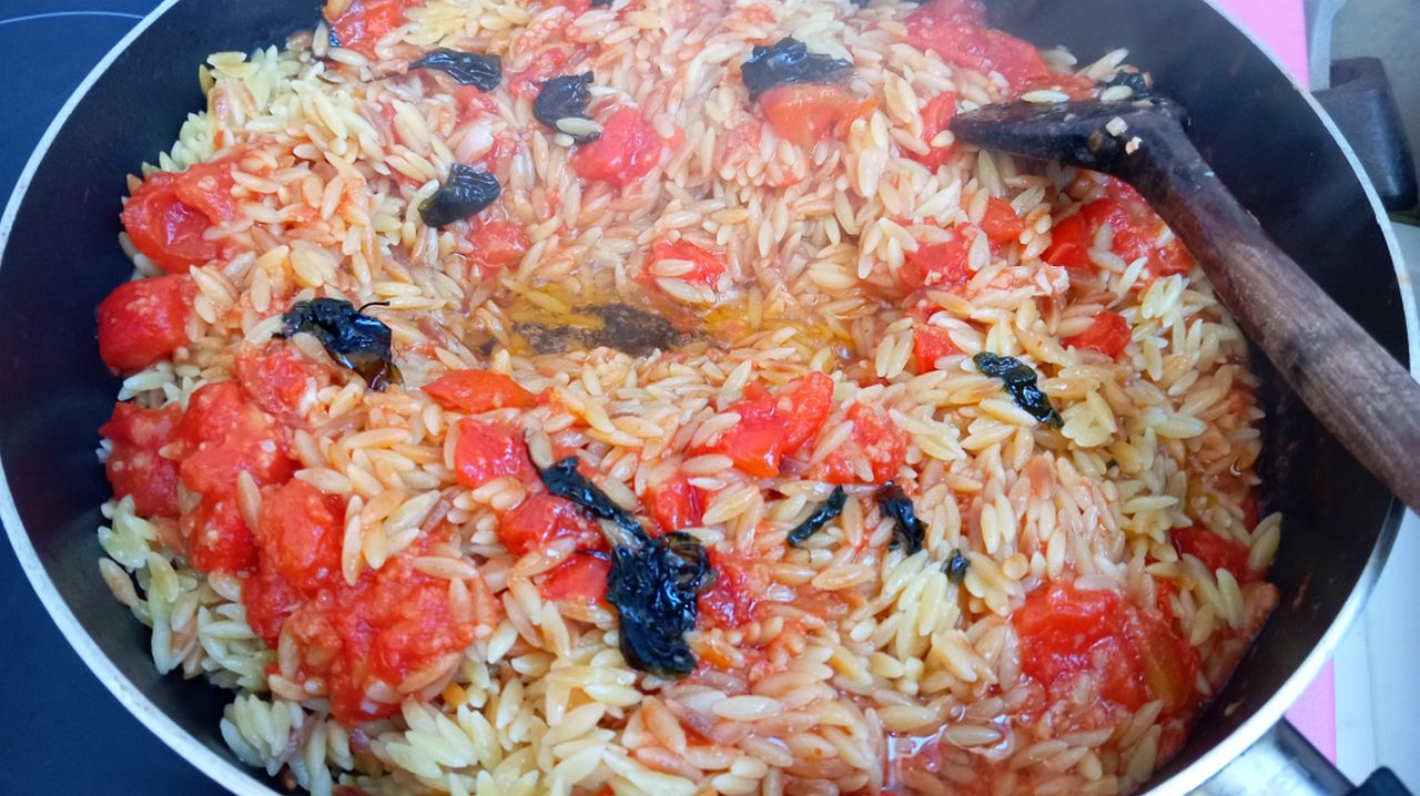 Домашни рецепти – Арпа фиде с чесън, домати и босилеково олио