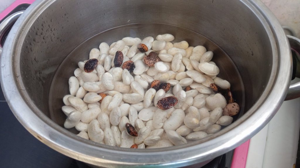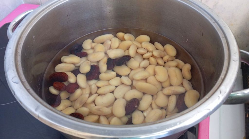 Използваме около 400-500 грама боб. Накисваме във вода и оставаме за около 7-8 часа.