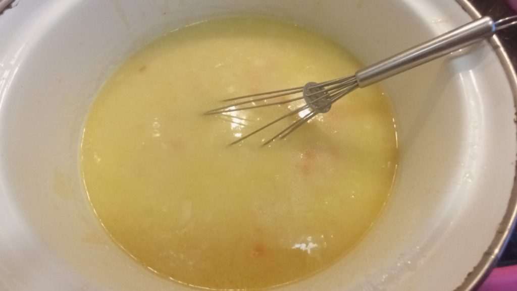 В малка тенджера или по-голяма касерола сгорещяваме около 100 гр. олио. В него запържваме морковите, останалия лук и една чаена лъжичка червен пипер, след което ги оставяме под капак за минута. Добавяме две супени лъжици брашно и бъркаме интензивно, докато сместа придобие златист оттенък. Добавяме горещ бульон от врящия боб, като през цялото време бъркаме. Така се получава кашата, която добавяме към фасула.