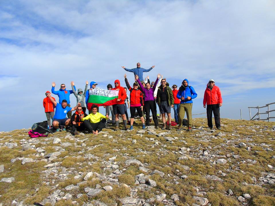 За около 1:30 ч бяхме на върха. Гледките от тук бяха невероятни, въпреки неприятната мараня, която се бе постлала навсякъде. По традиция изиграхме едно хубаво българско хоро, направихме много снимки за спомен и потеглихме в обратна посока. Връщането го направихме за около един час средно за групата. Доволни и предоволни запалихме колите и се отправихме към намиращия се на 77 км от тук Лещен, за да се насладим на заслужена почивка.