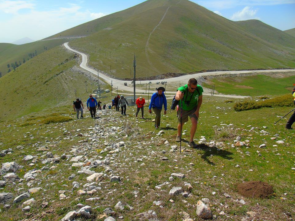 Потеглихме към върха по сериозен склон, по който се движи и пътека, виеща серпентини, но с оглед на почти визуалната връзка до върха, всеки бе нетърпелив да се изкачим и да се насладим на зашеметяващите панорами и поехме направо по склона. Тръгнахме от 1750 м, а до крайната точка трябваше да изкачим близо 500 м положителна денивелация (която най-накрая стана 600 и заради слизането в подножието на върха).