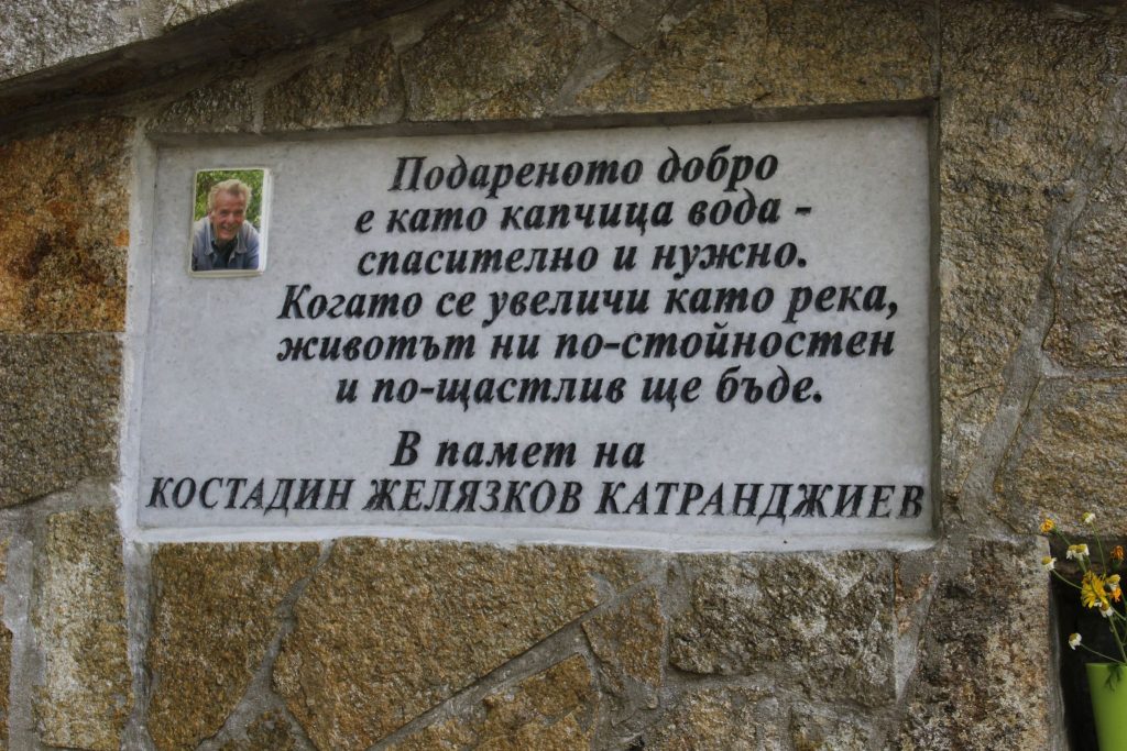 На чешмата са разположени две плочи. Едната е на лицето на чешмата и е възпоменателна, посветена на паметта на Костадин Желязков Катранджиев. Другата е сложена на дясната страна на чешмата и дава информация, че чешмата е построена през лятото на 2014 г. Освен това има благодарствен текст към Петър Николов Петров и всички, които са се включили в изграждането на тази чешма.