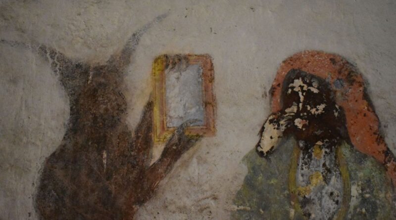 Една от най-стряскащите композиции, които съм виждал в манастир, е на северната стена в емпорията на храма в Чуриловския манастир „Св. Георги“. Дявол подкокоросва младо момиче да се гледа в огледало и да се гизди, за да изостави добродетелите си и да се отдаде на себелюбие.