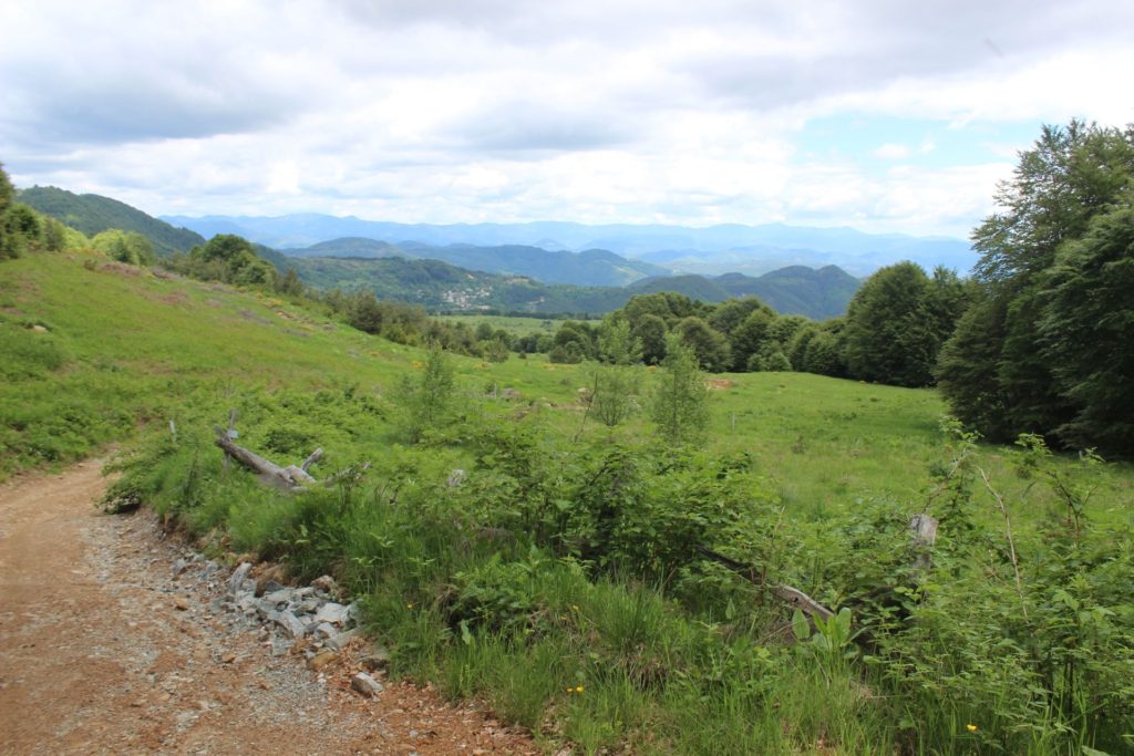 Следва участък от около 1.5 км сред красиви ливади и безбрежни панорами. Тук виждате кулата на връх Снежанка (Пампорово), НАО Рожен и върховете Преспа и Свобода. Преминавате през ловно чакало и не след дълго достигате до кът за отдих с барбекю, чешма и тоалетна.