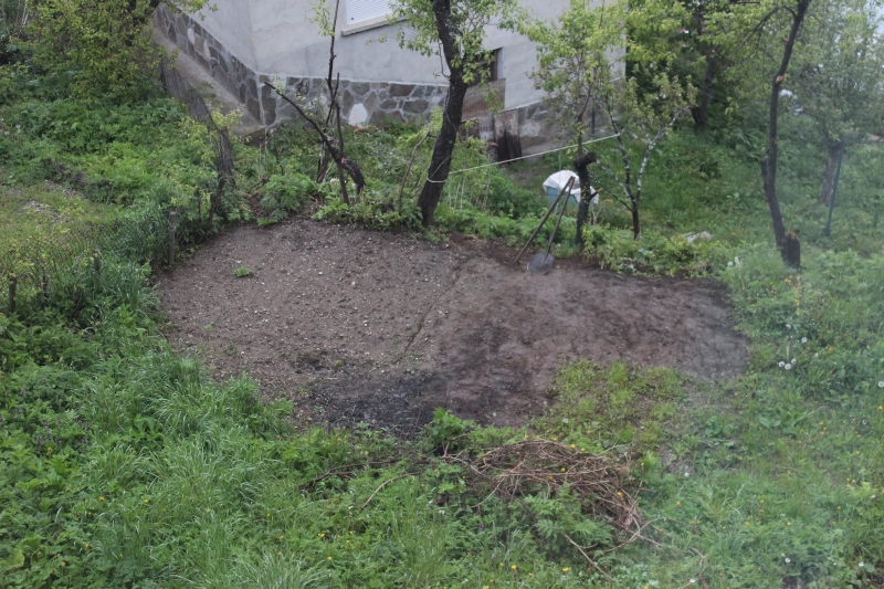 Използвах сравнително хубавото за май време и се качих за да започна да подготвям градината за засяване. От както се захванахме с поддържането на вилата, долната градина винаги е използвана в съвсем малки възможности. Тази година решихме да разширим мястото за сяване и да посеем фасул и картофи, а по време на отпуските да подготвим тераска и за посяване на малини и касис в края на есента.