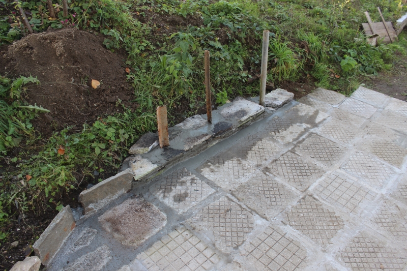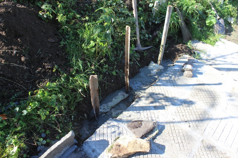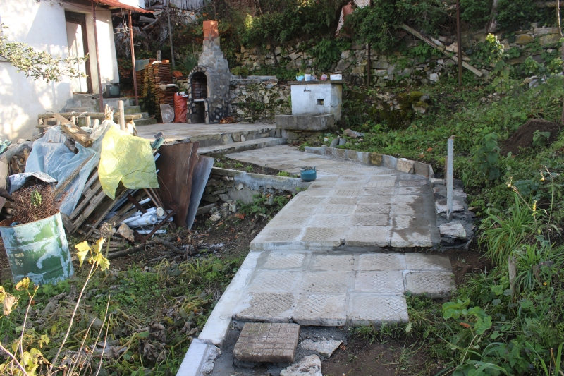 По барбекюто почти не остана работа, само да се облече комина с тикли и да се направят някои козметични подобрения. Продължих плочника към вратата и започнах изграждането на голям зид, който да служи за подпора на пръстта, която ще извлека, за да мога да изравня градинката. Започнах почистване на предния двор, като изгорих насечените от ябълката клони. Започнах почистване и на задния двор, като почистих листата, клоните и боклуците и малко по малко започна да се открива все повече пространство, което може да се ползва през топлите месеци за различни кулинарни манипулации – приготвяне на ликьори, сиропи, компот, сладка и прочее.