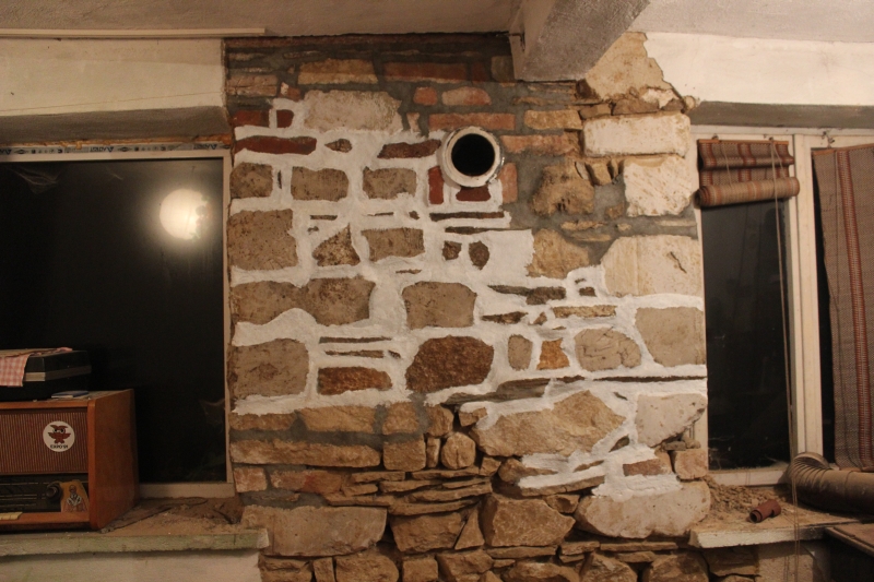В едната стая направих около един квадрат попълване на фугите и лакиране на камъните. Всичко друго в стаята ще бъде санирано, ще налепя фибран и ще изолирам вътрешно. Отвън – родопската класика – камък с лак и бели фуги.