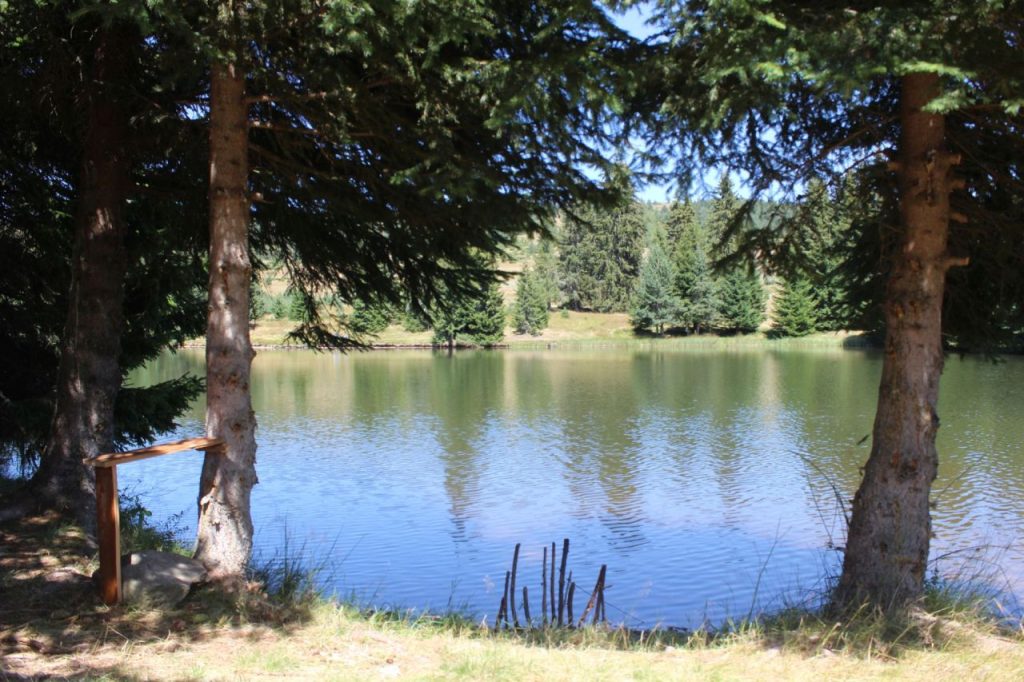 Следва спускане в рамките на около 500 м и излизате на черния път за Хайдушки поляни, между хижа Момчил юнак и малкото езерце, което се намира до хижата. Тук има чешма и беседка, може да хапнете и да починете, преди да тръгнете по обратния път.