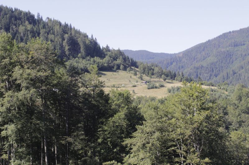 В долния десен край на ливадата пътят отново се спуска и достига до неголямо поточе. Достигайки до него хващате в дясно и пътя започва леко изкачване сред изобилие от малини.