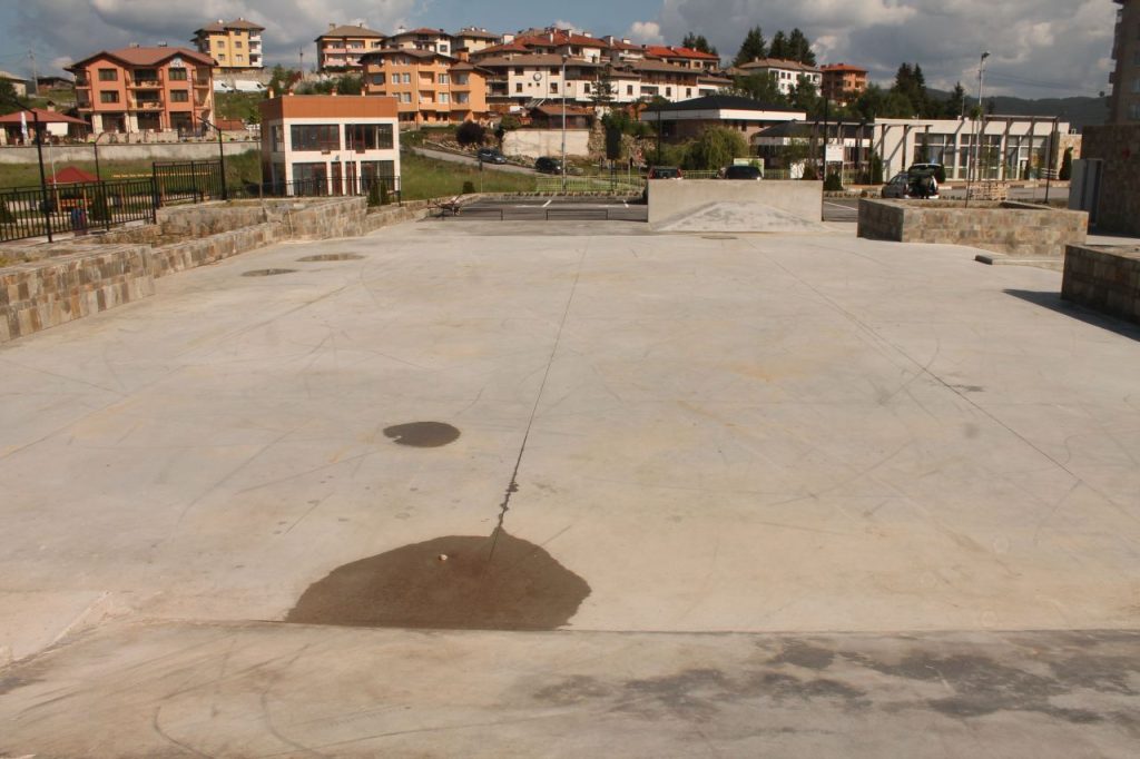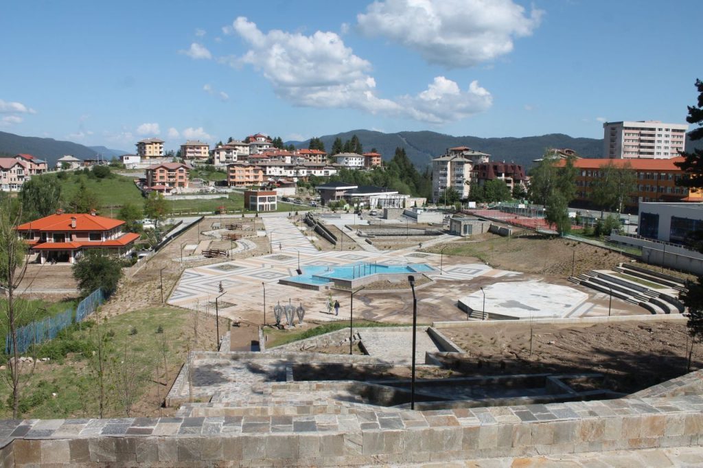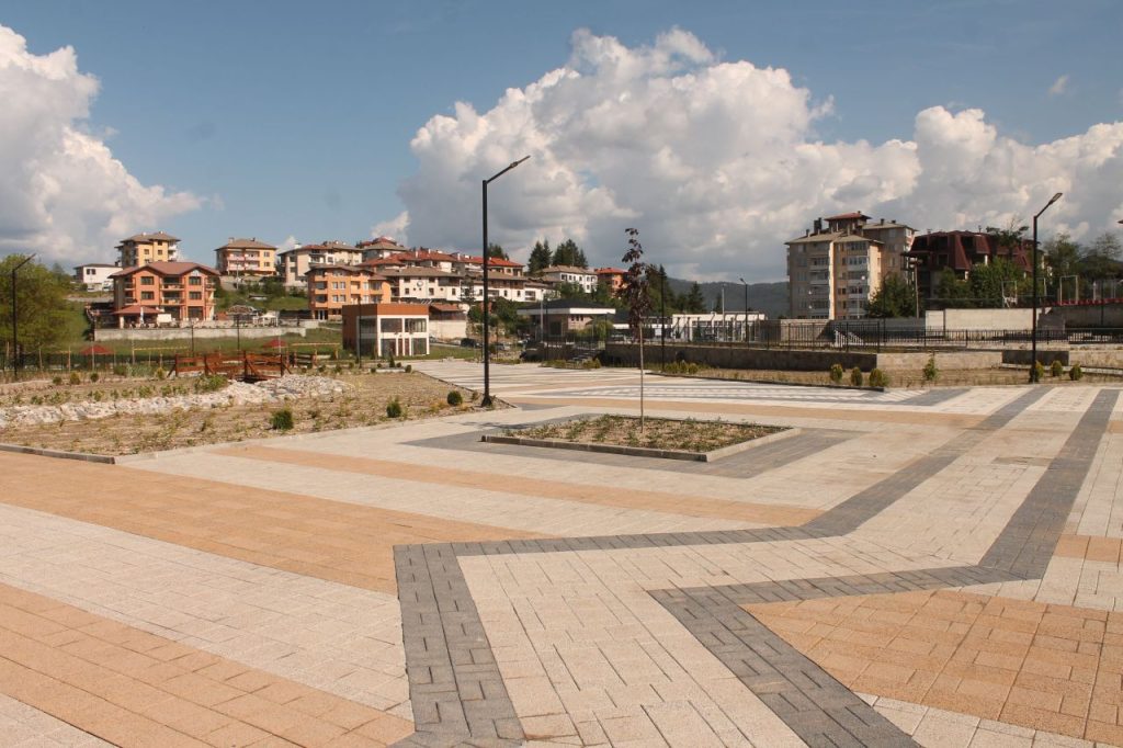 Има фонтан, захранван с кристално чиста вода. Има търговска площ, която е оформена на второ, долно ниво под парка. Има амфитеатрално разположени пейки и сцена, в непосредствена близост до гората.