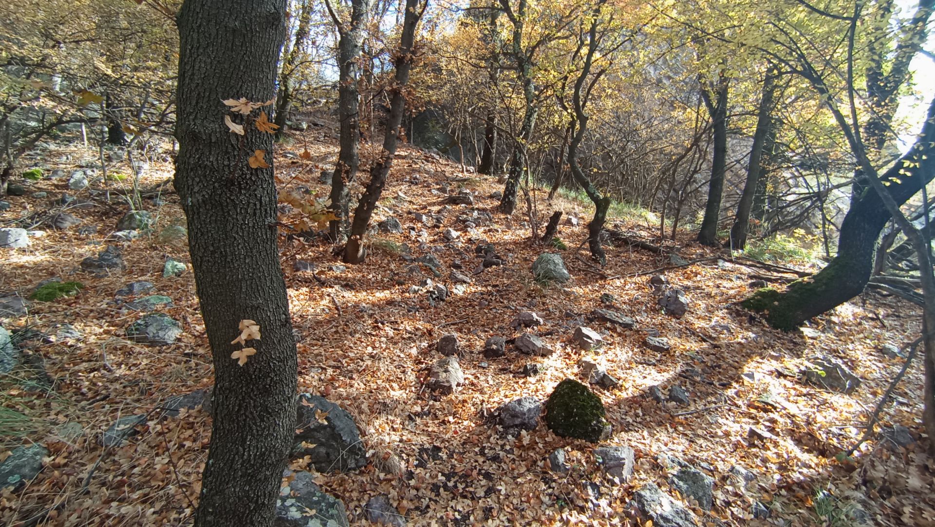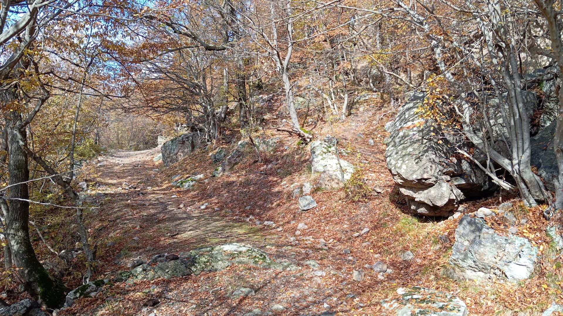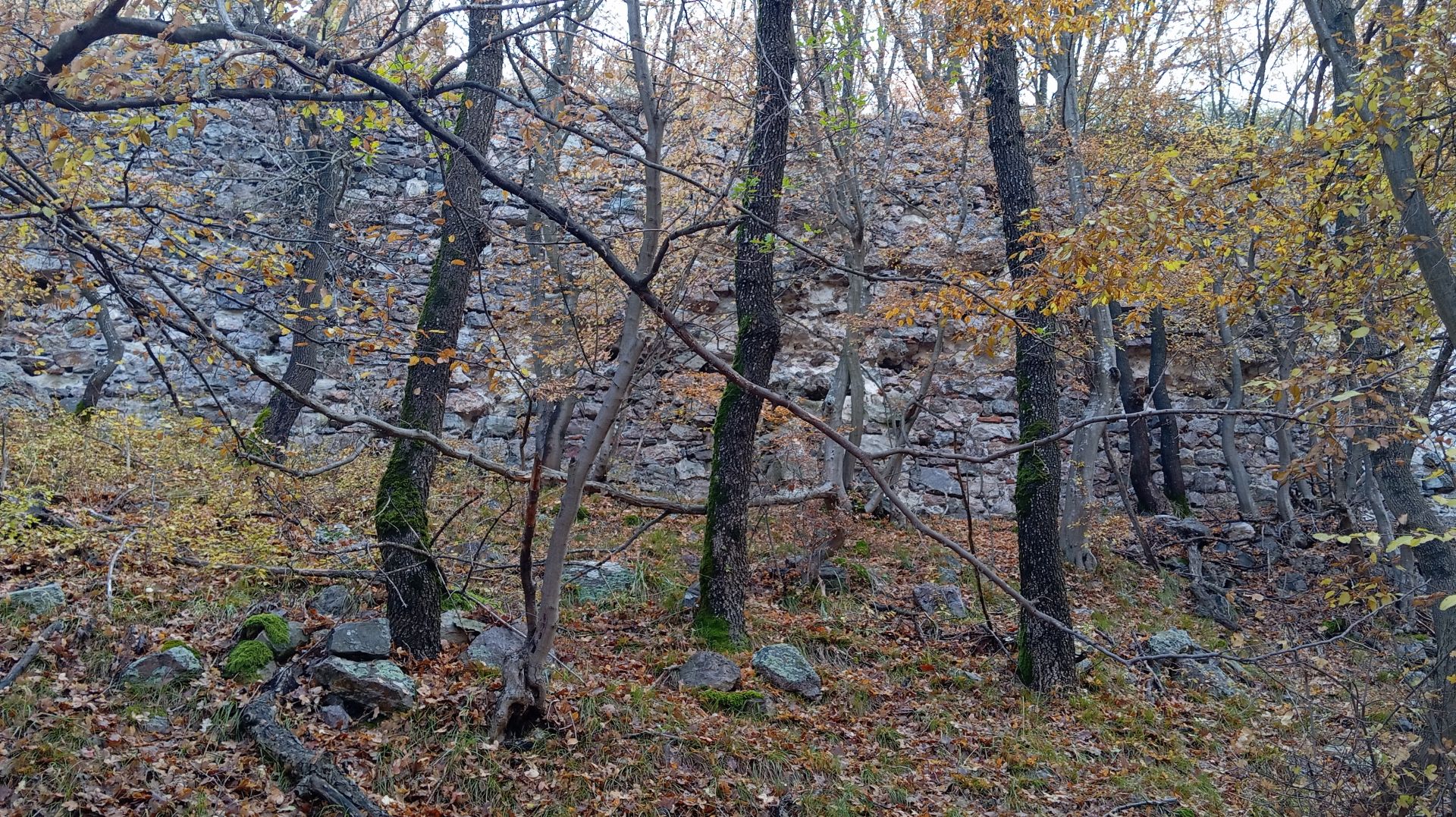 Продължавате край крепостната стена, която остава зад вас. Следвайки терена и сравнително добре различима пътека през открито пространство, се насочвате към малка седловина между две възвишения. Достигайки горната част на откритата площ, поемате вдясно и нагоре по ясно различима пътека, която навлиза в гората.