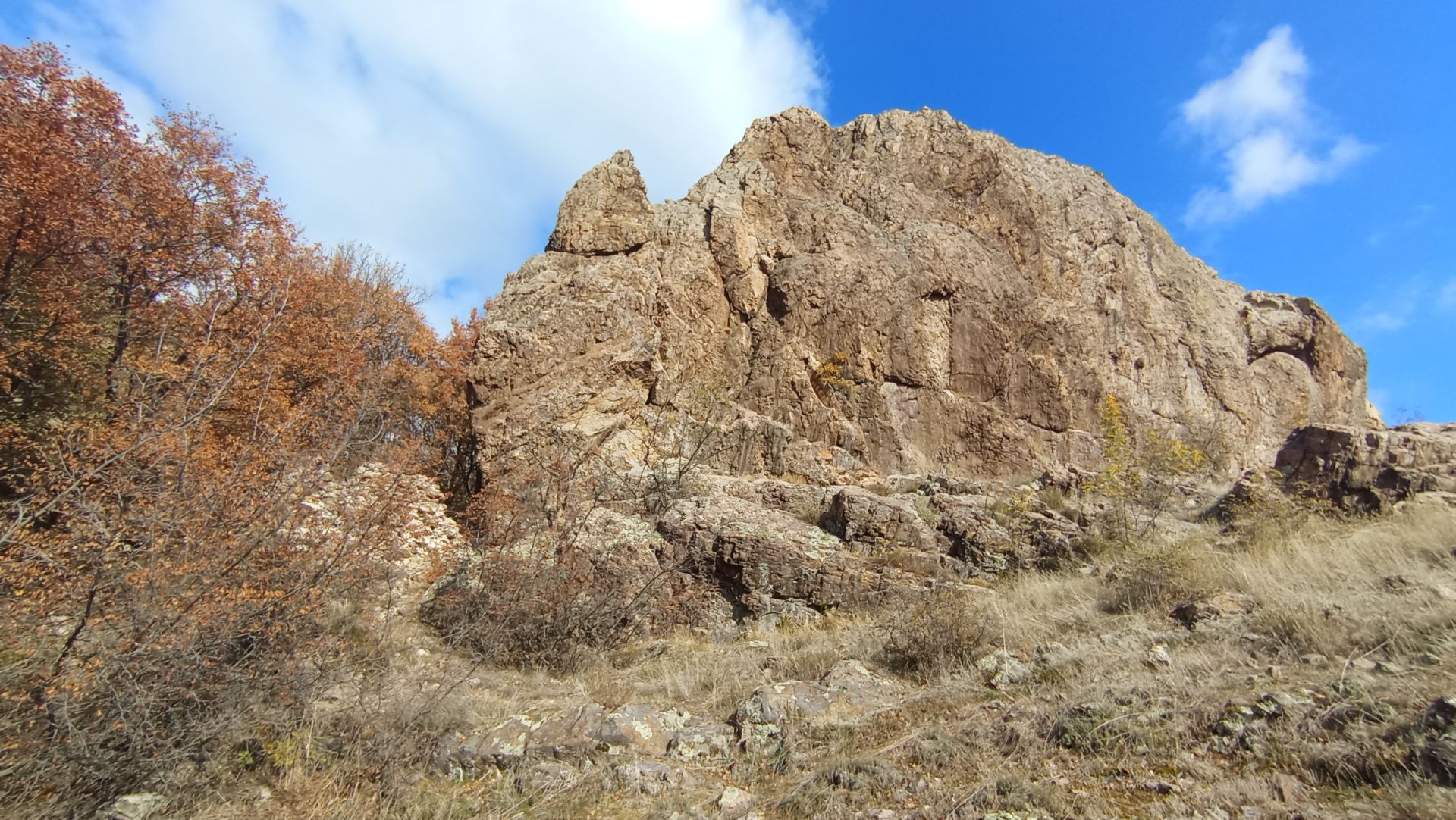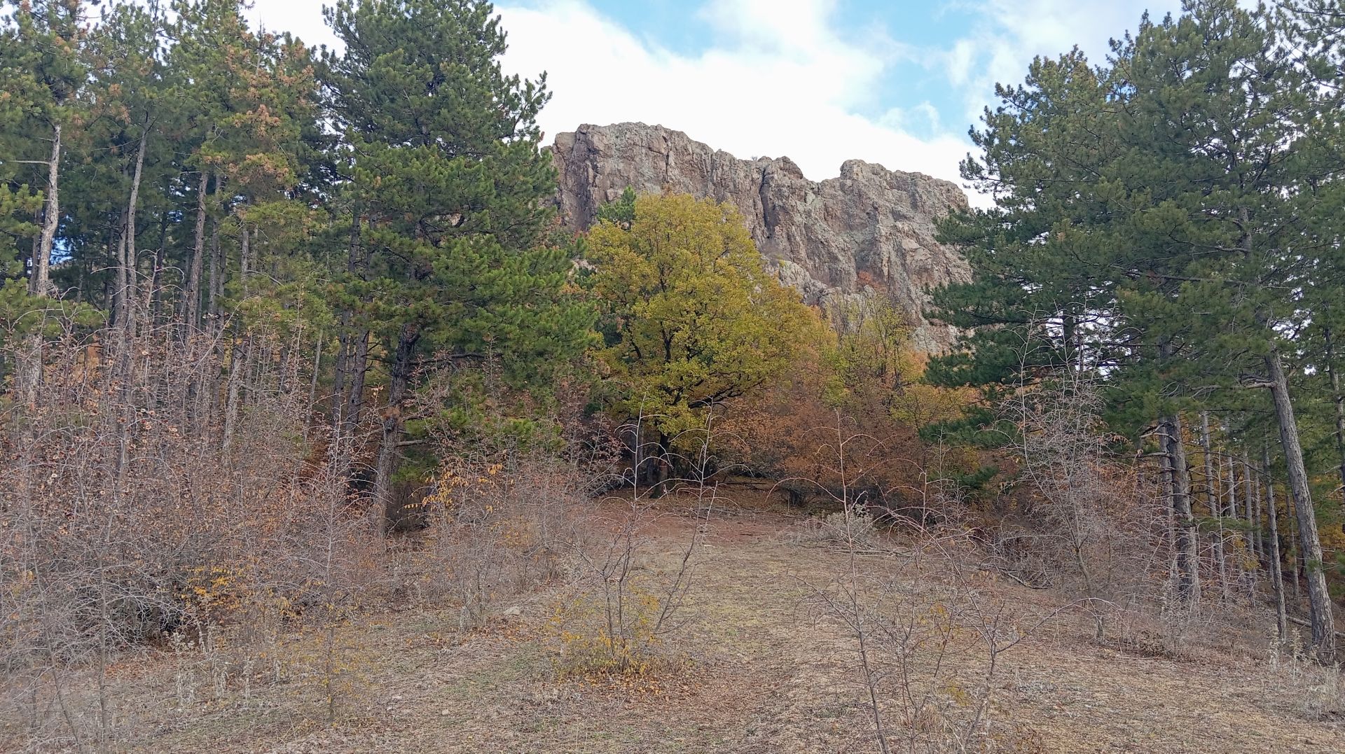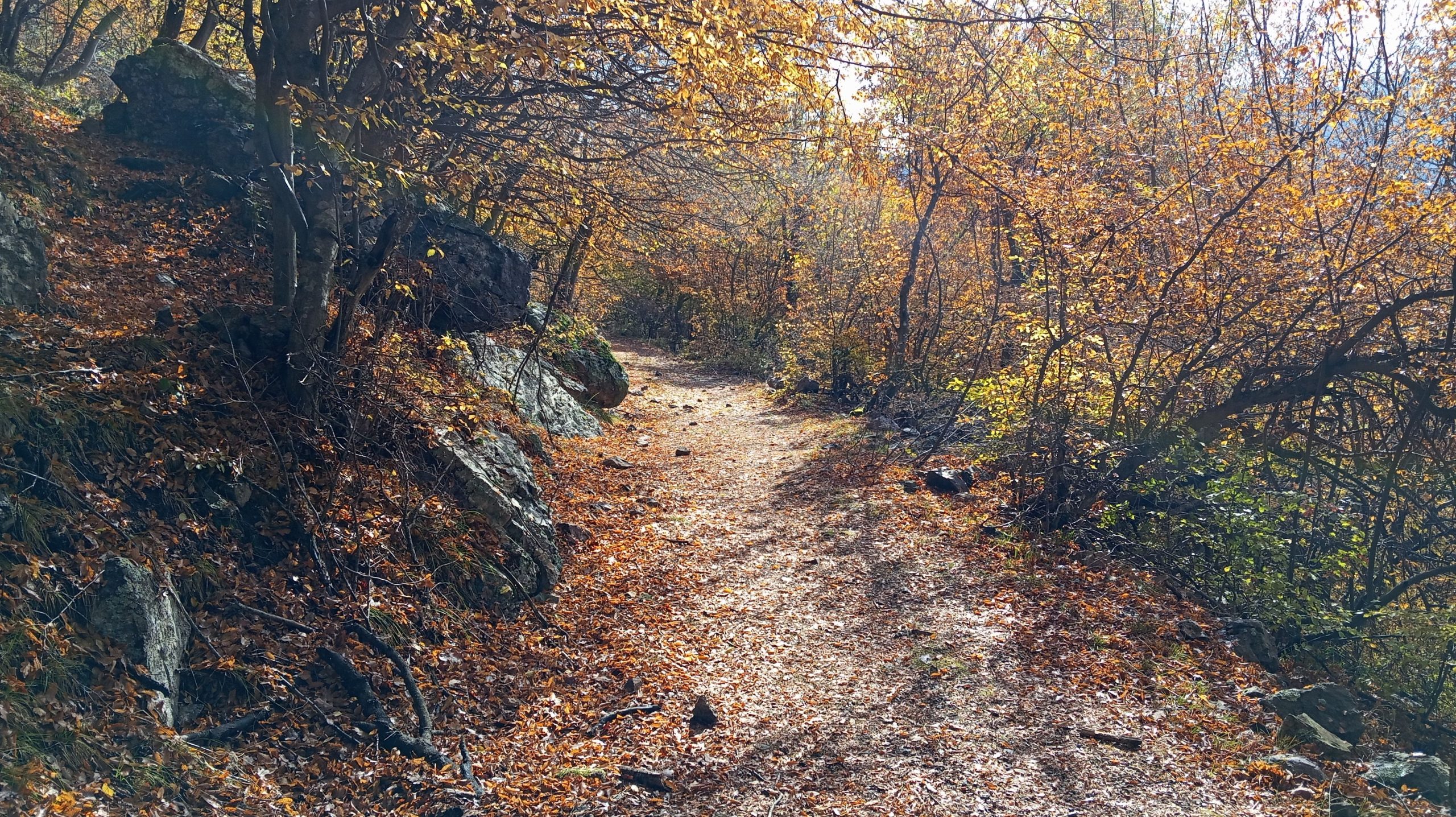 Продължавате край крепостната стена, която остава зад вас. Следвайки терена и сравнително добре различима пътека през открито пространство, се насочвате към малка седловина между две възвишения. Достигайки горната част на откритата площ, поемате вдясно и нагоре по ясно различима пътека, която навлиза в гората.
