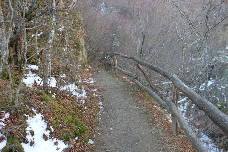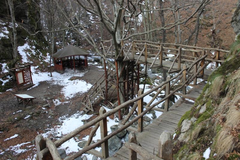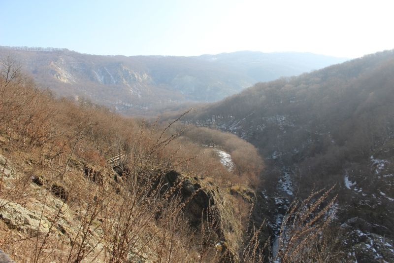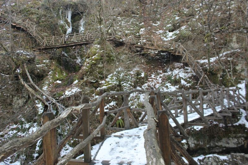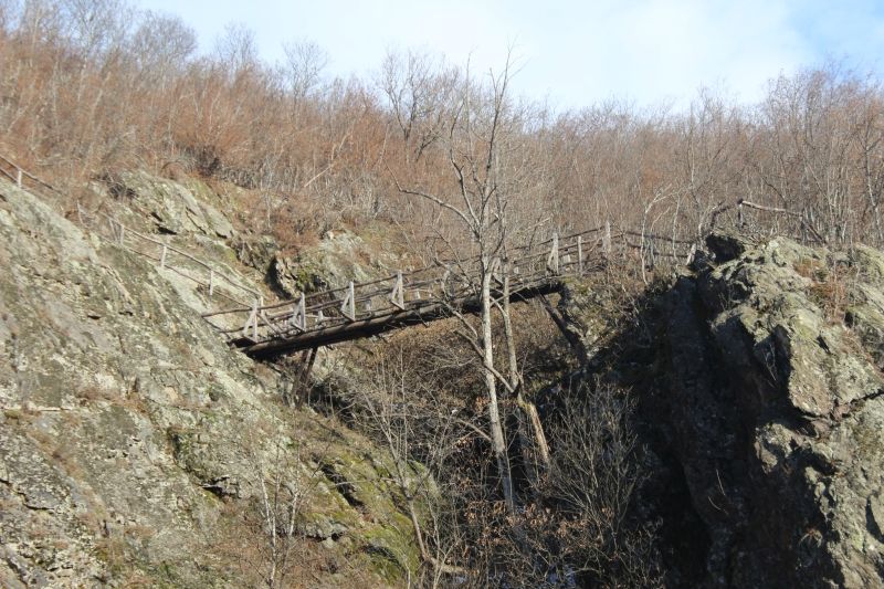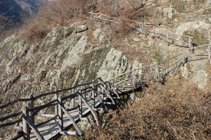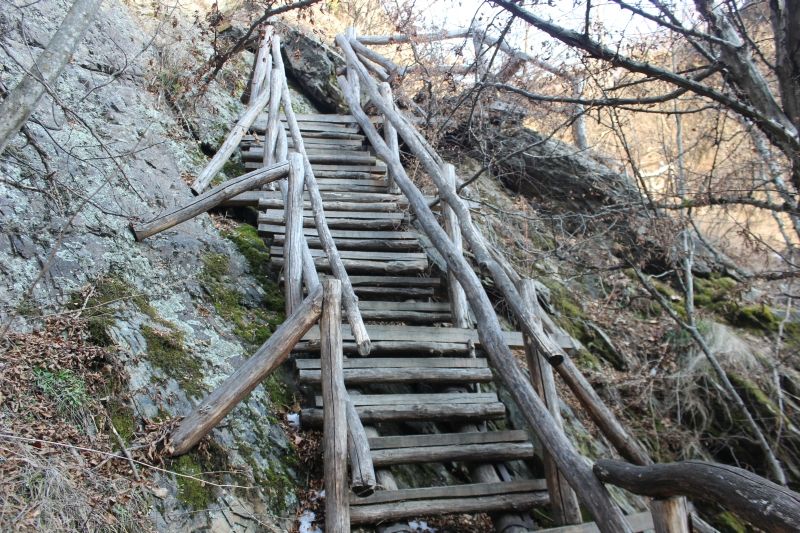 От тук обратно пътеката се спуска по западния склон над реката, като през цялото време имате визуална връзка към мостчетата по които сте дошли на идване. Няма опасни пасажи, които да ви затруднят, може би една идея повече е спестено от към обезопасяване, но като цяло инфраструктурата е добре.