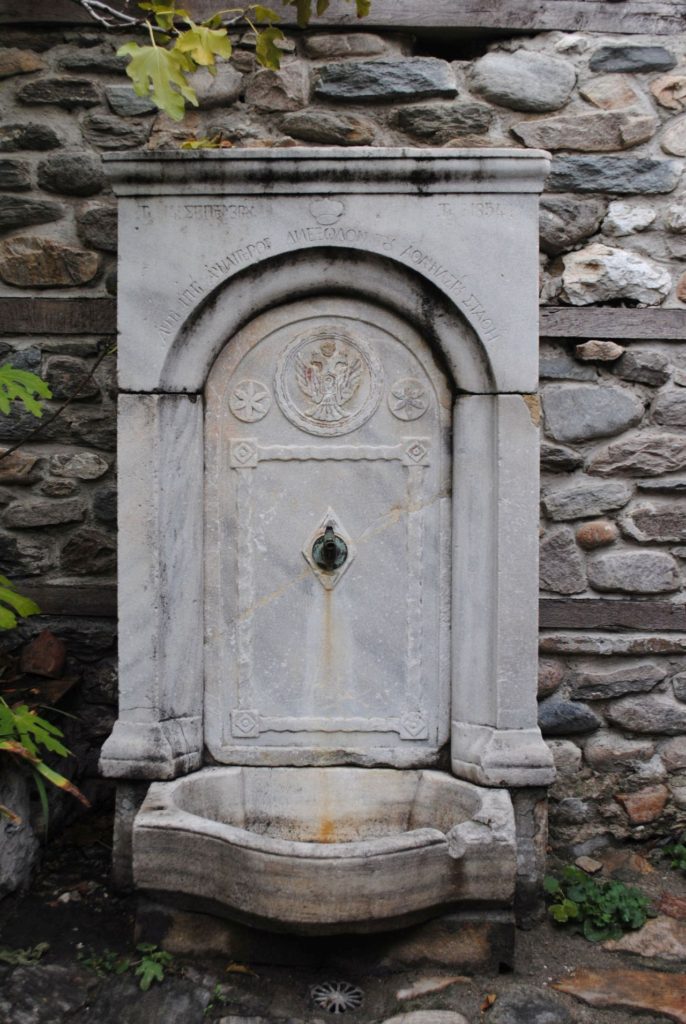 На сводестия, най-горен елемент на чешмата има надписи на гръцки език, сред които дори и незнаещия гръцки разчита датата 14 сптември 1852 г. По извивката над свода също върви надпис.