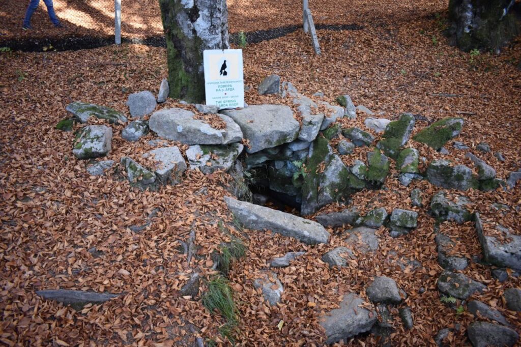 Продължавате и след около 100 м. достигате до оградено пространство, в което от камъни е оформено малко корито с надпис „Природна забележителност. Извор на река Арда“. Тук, началото на своя дълъг път започва най-голямата река в Родопите.