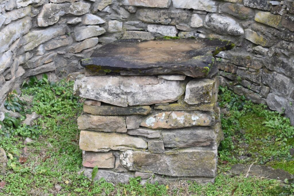 му страни са долепени каменни скамейки. Църквата е леко вкопана, като в нея се влиза посредством две каменни стъпала.
