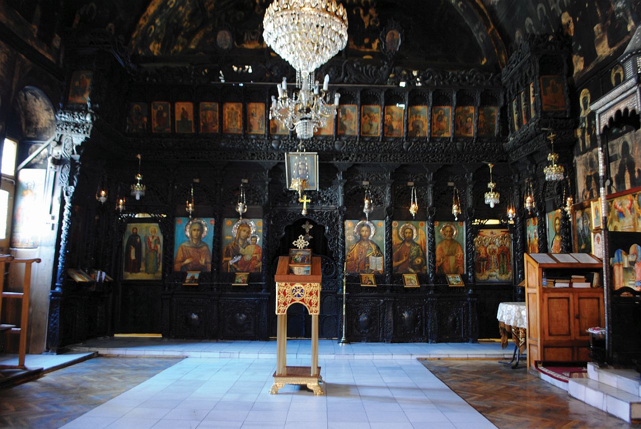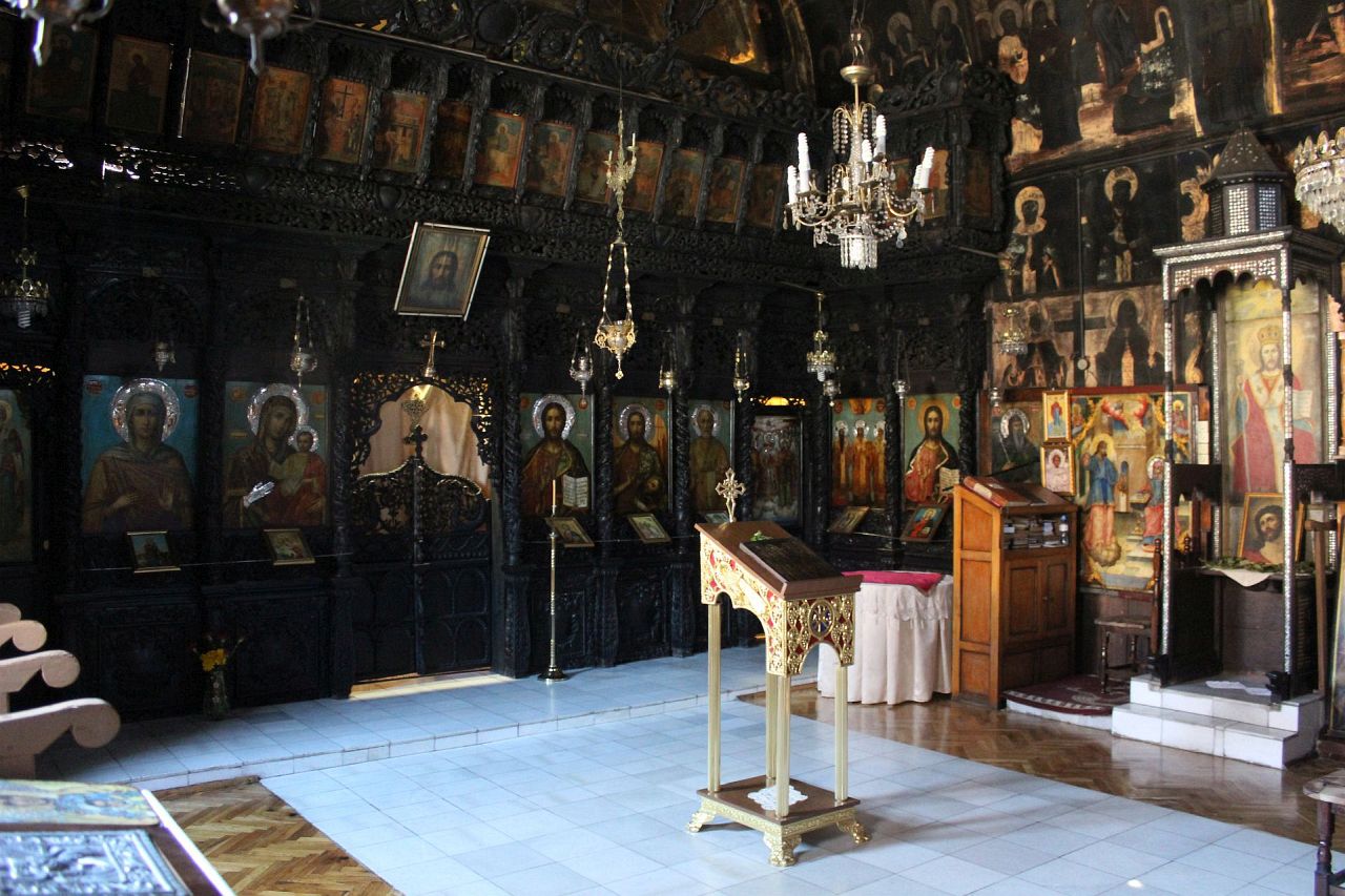 Таванът и стените са изцяло изписани със светци, пророци и картини от Стария и Новия Завет.