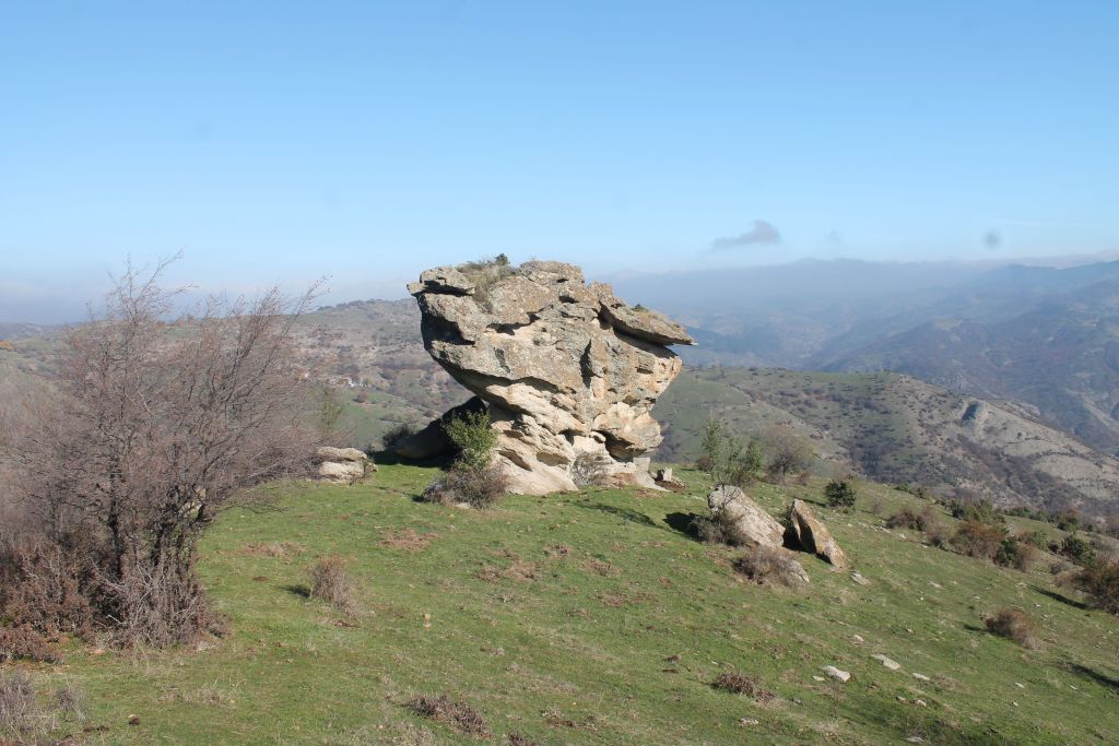 Каменната гъба край чернооченското село Женда. Последните гънки на западнородопския рид Синивръхски са невероятно красиви.