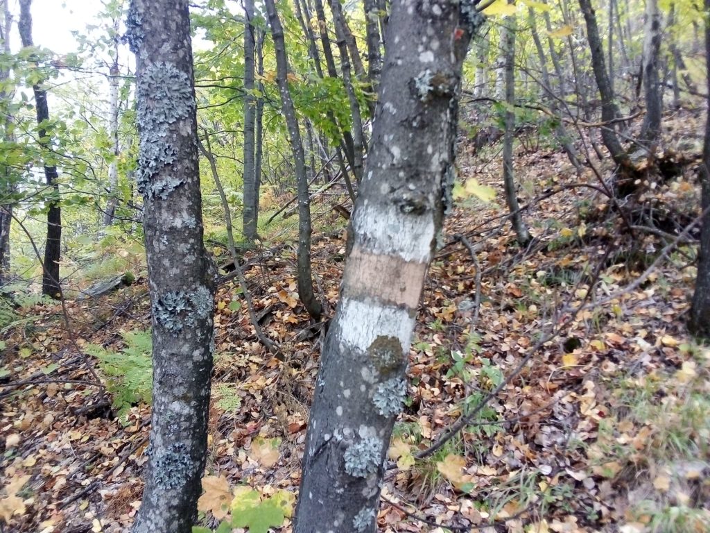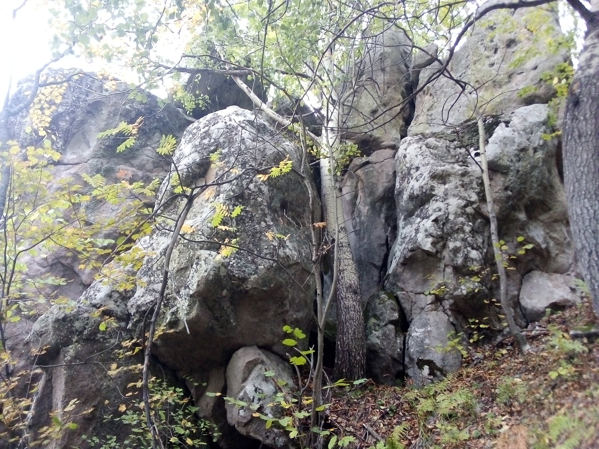 Изведнъж на едно дърво видях стара червена марка. Много стара. Значи наистина е имало пряка пътека. Продължих сред гъстата гора и достигнах до скалите, изписани като „Карипов камък“. Тук има няколко ниши, които са чест домакин на сърни и прасета.