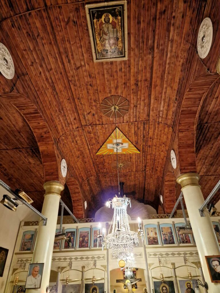 Интериорът на храма е много интересен. Това едновременно е православен храм, едновременно и не е, заради основни характерни за католицизма детайли от вътрешното обзавеждане.