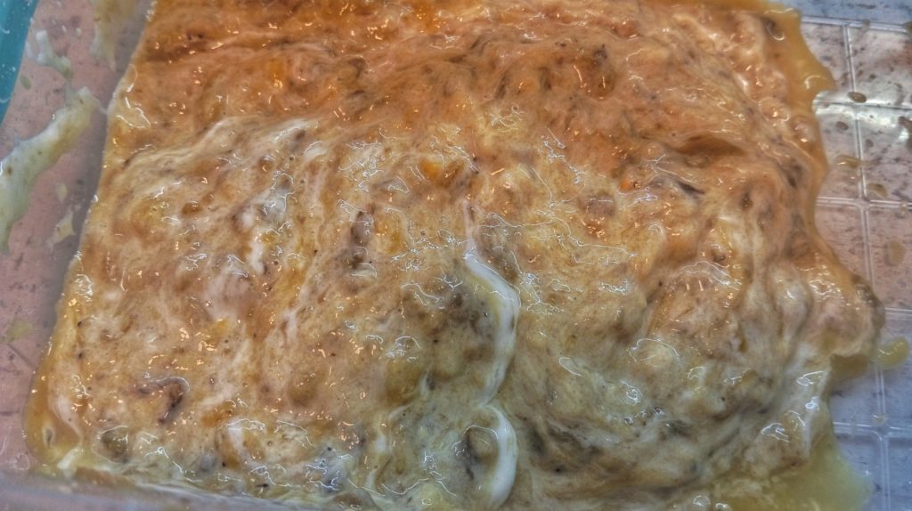 Изпичаме във фурна патладжаните. Слагаме ги първо 30 мин на 200 градуса, след това още 20 на 160 градуса. Оставяме ги за около час да изстинат, след което ги обелваме. Изчистеното от тях месо осоляваме и добавяме олиото. Почистваме и пресоваме чесъна. Важно е да махнете средната жила от скилидките, която всъщност е причина за стомашни неразположения и дискомфорт. Разбърквате добре, след което добавяте и кутийката майонеза. Отново разбърквате, за да се смесят добре всички съставни части.