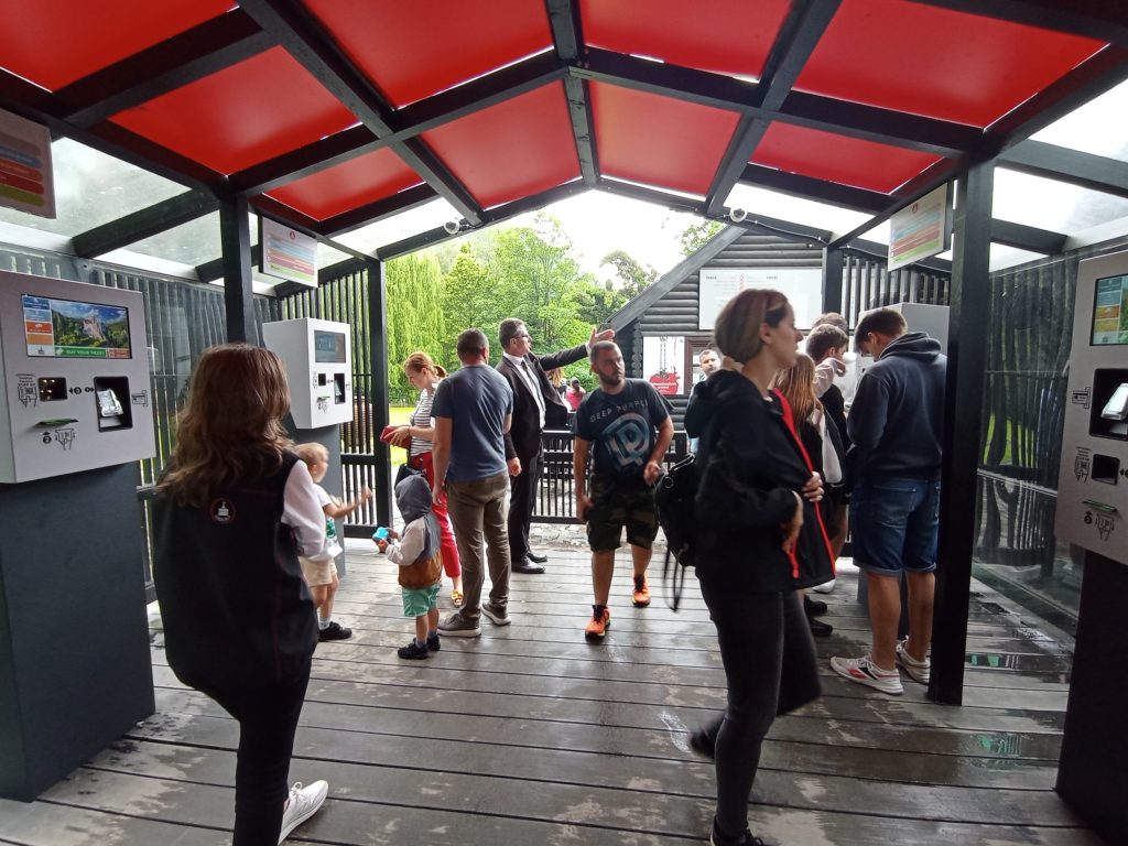 Това, което виждате са машини за билети в замъка „Бран“. Плащаш, взимаш билет, преминаваш през турникет и всичко това става под погледа на няколко камери и на няколко оператора, които са в периметъра и се грижат за обслужването на клиентите.