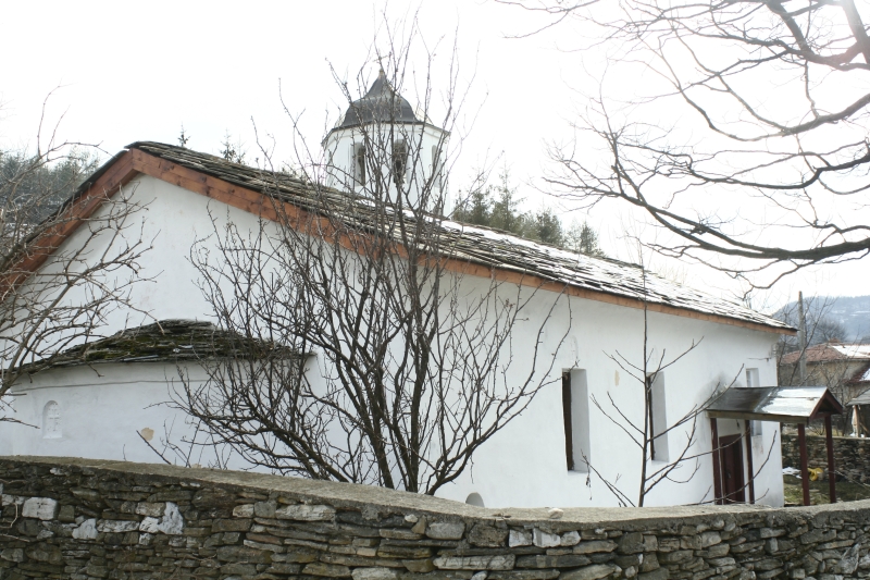 Еднокорабен, с двускатен покрив. Входът е от север. Липсва кубе. Не е вкопан, подобно на много други храмове в региона. Стенописите са от 1879 г. Водоснабдена е през 1974 г.