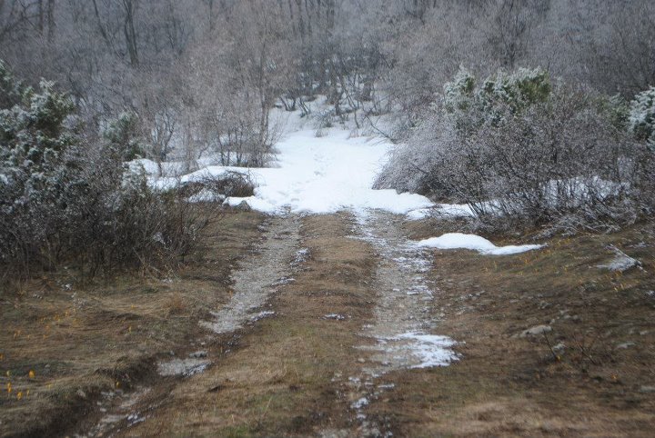Около 10:30 часа бях пред „Пъдарската колиба“. Тук обаче бях много неприятно сюрпризиран. Изведнъж (както се вижда и на снимката) снегът заприщваше пътя и ходенето нагоре ставаше напълно невъзможно. Поседях, поседях, пък си казах, че друг път пак ще се пробвам и поех надолу с идея да ида до манастира „Св. Петка“, да пощракам и там и да се прибирам към града. Поразочаровах се честно казано, но пък такъв ми бил късметът.