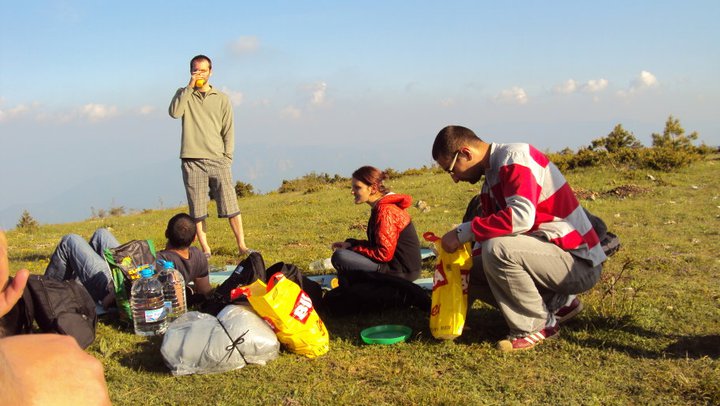 Оставихме колите под нагорнището и се натоварихме буквално като магарета. Бяхме взели ядене и пиене все едно отивахме на едноседмичен банкет. Добре че се появиха и Апо, та качихме някой от нещата при него. Неговата кола явно е пригодена за такъв маршрут и направо фъркаше по баира.