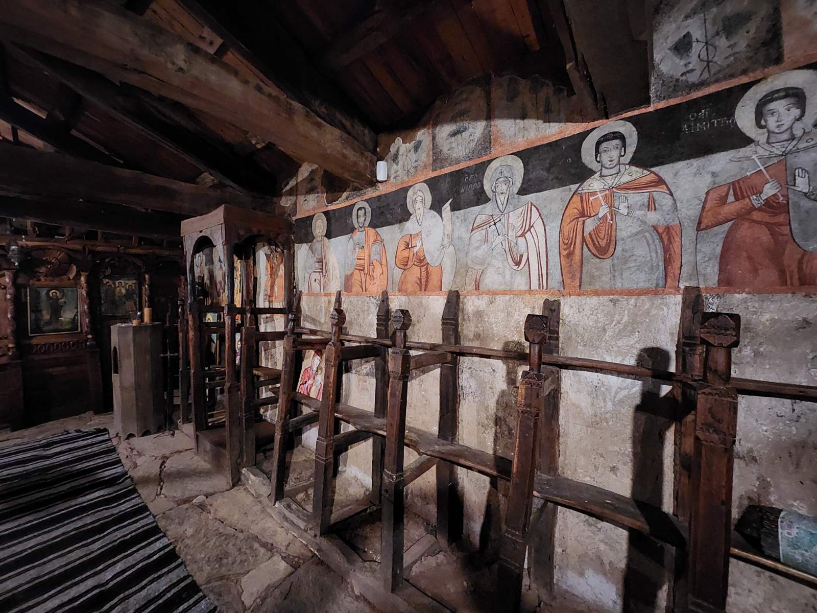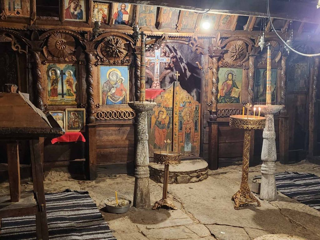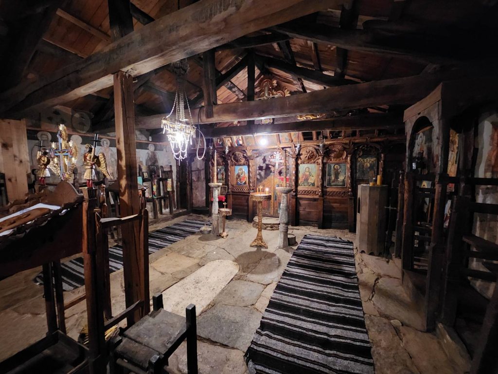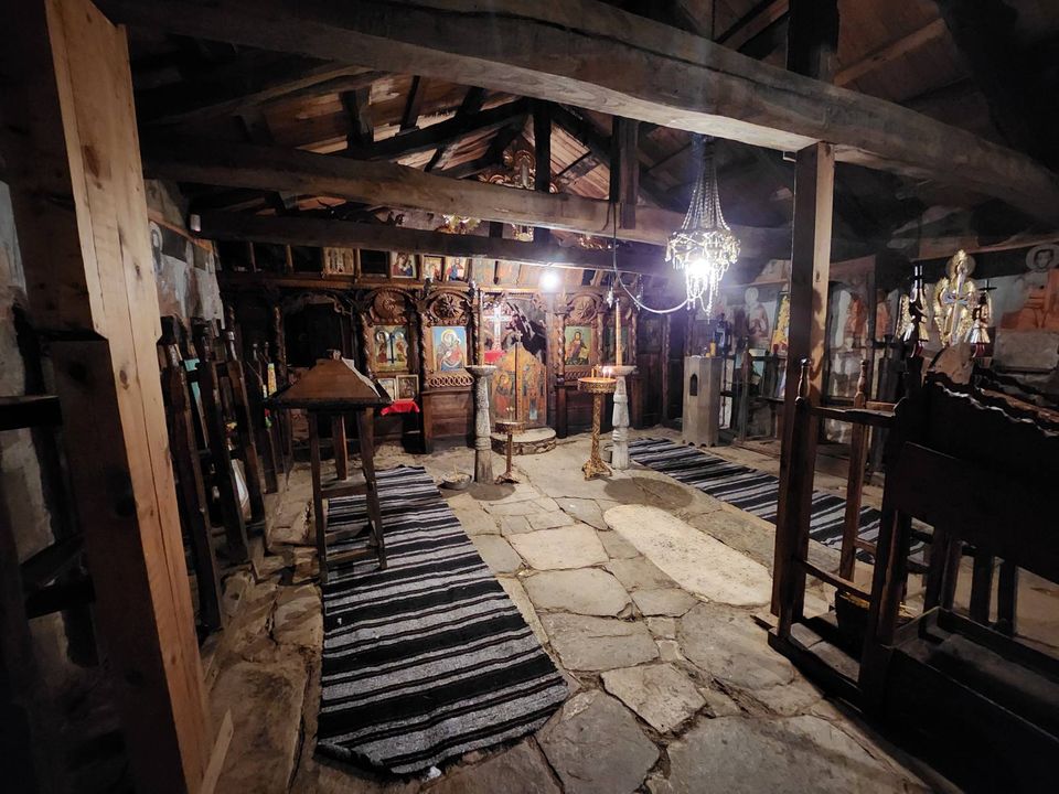 Стари греди държат покрива, и допълнително показват автентичния образ на този храм, строен през 1806 г., един от най-старите в Родопите. Светлина няма. Няма и прозорци. Точно седем нощи е продължил строежа на тази „уж“ стопанска постройка, обор за животните. Тихо, в мрака, в завера на мълчанието.