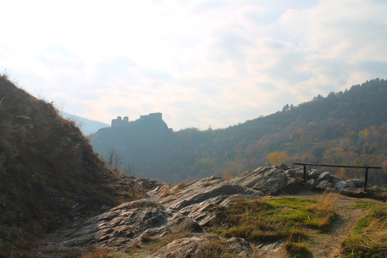 Достигате пейка, която предлага прекрасна панорама към Асенова крепост и параклисите, разположени на скалите над Асеновград.