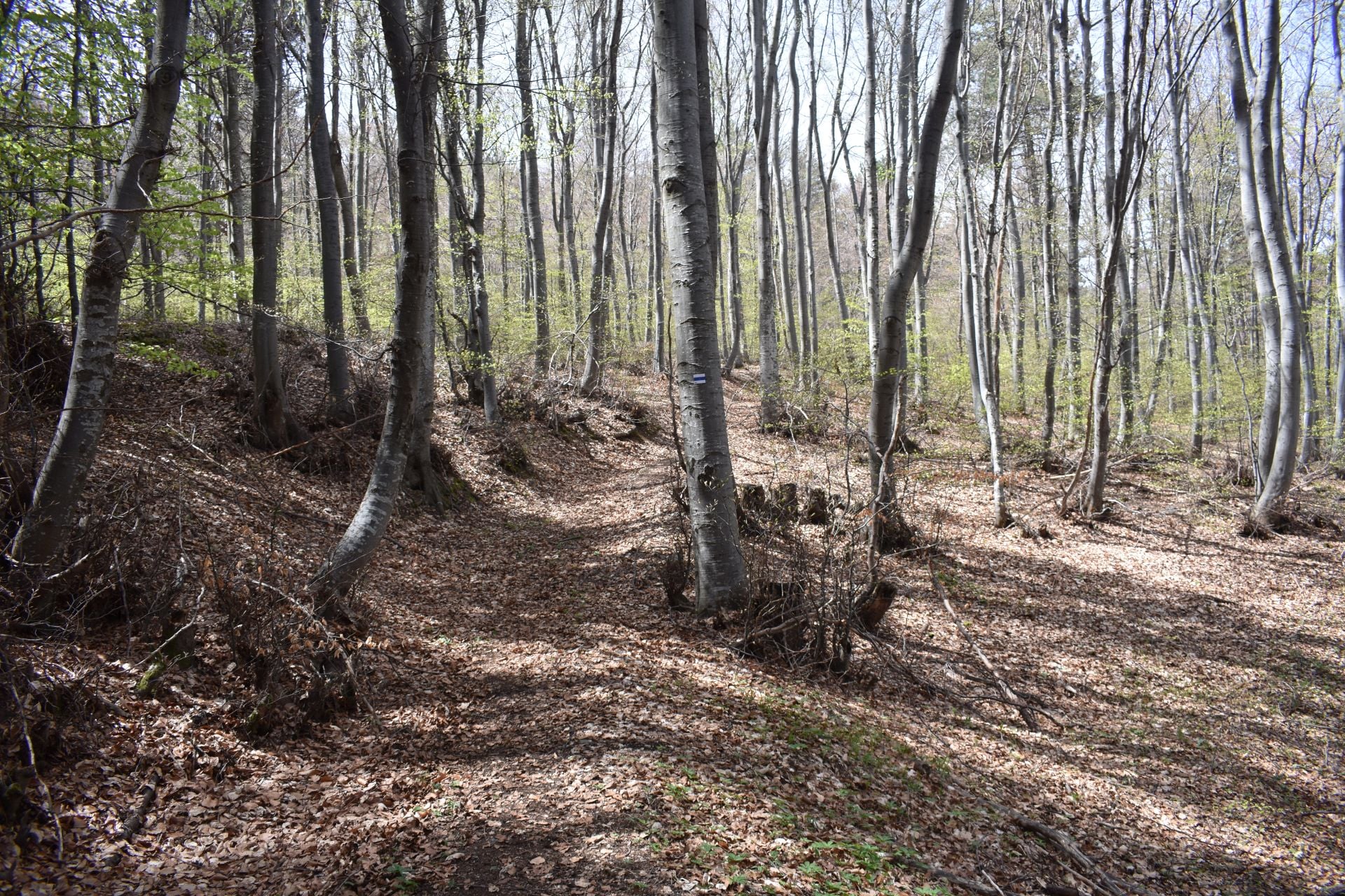 Достигате източното подножие на връх Голямото кале 1043 м. Тук пътеката започва постепенно да губи от своя наклон. Навлизате в стара смесена, а в края и изцяло букова гора, което прави придвижването, особено през горещите летни месеци прохладно и приятно.