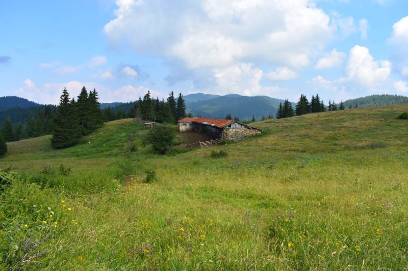 След стръмно спускане по почвен път в иглолистна гора, отново излизате на равни открити пространства. След този равен пасаж от маршрута има кратко изкачване и отново преминавате през превал, след който до хижата ви предстои само спускане. Тук има чешма и голяма беседка.