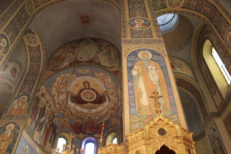 Пищността, с която храмът е изрисуван е впечатляваща. Ще ви трябва доста време за да разгледате внимателно всеки църковен персонаж или сюжет, както и богатата орнаментика, заемаща голяма част от интериорното пространство.