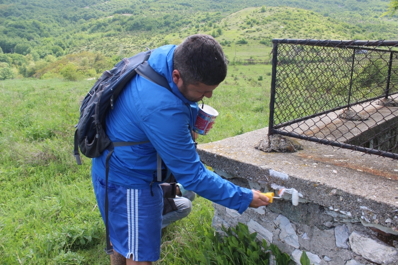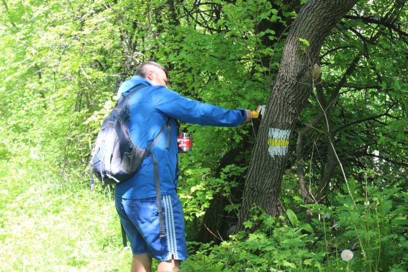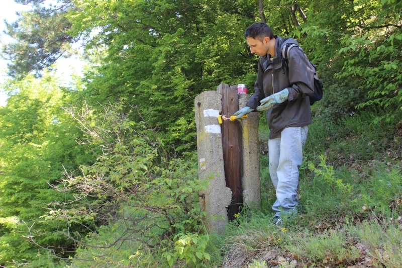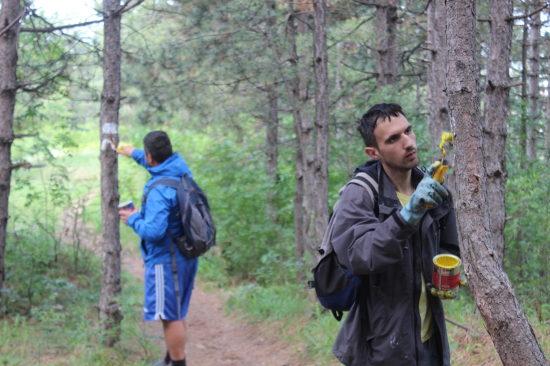 Приятели ни закараха до Лясково. От там започна нашето маркиране. Марката е бяло – жълто – бяло, а от старата маркировка преброихме едва няколко. Ние направихме честа и добре видима маркировка.