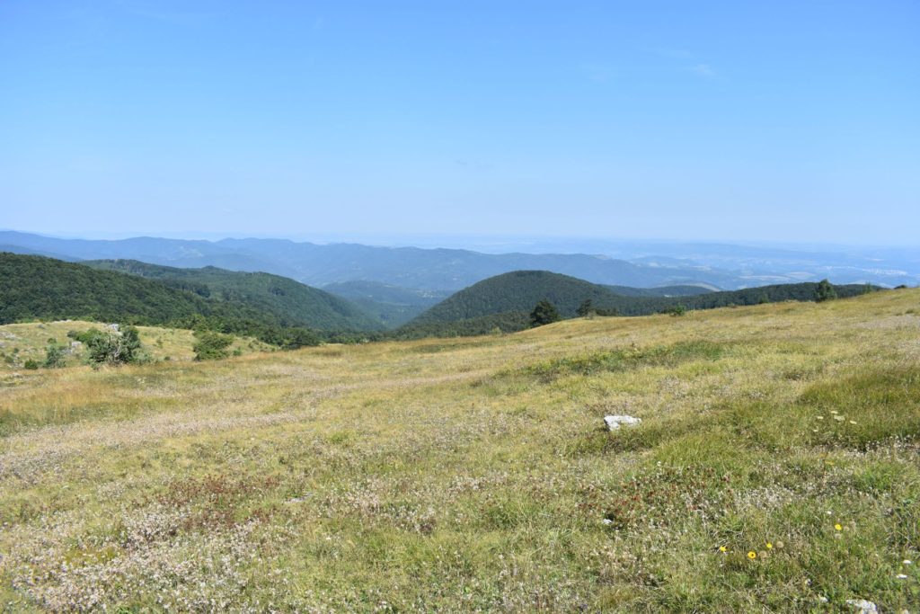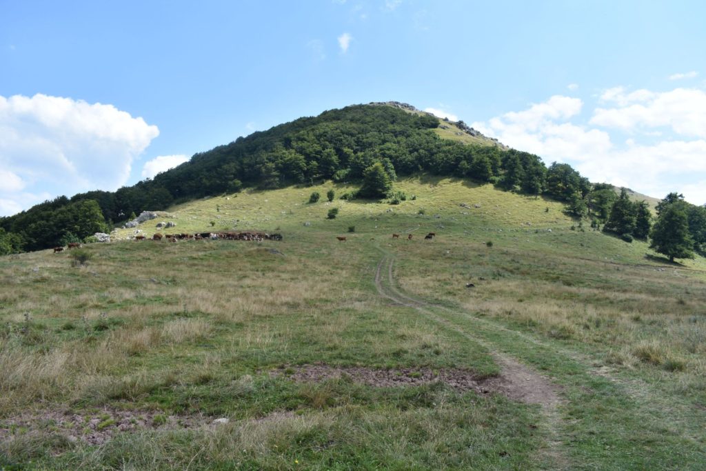 След около 20 мин, изкачване през букова гора, излизате на просторно пасище в подножието на връх Исполин, познато като Карамандра. От тук до върха имате не повече от 25-30 мин. На самия връх има поставен кръст, а гледките към Узана са изключително красиви. Разположението и височината на върха предразполагат към гледки с много километри перспектива.