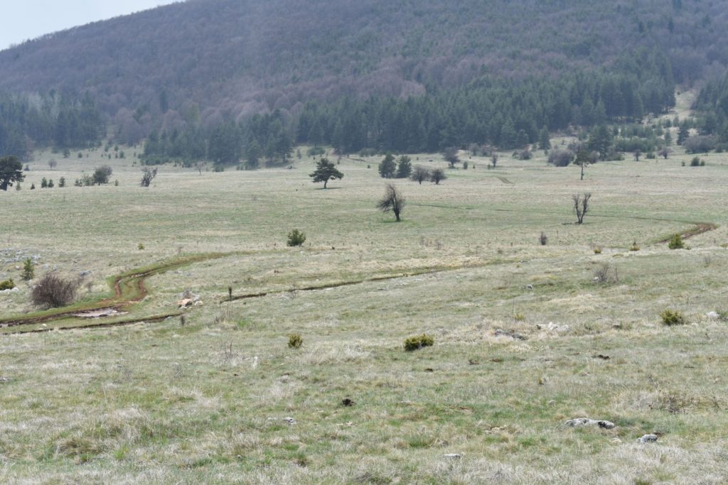 Преминавате през красиви открити пространства, а по пътя ви има и чешма. Тук маршрута се движи почти по равно. Не след дълго достигате и път, който пресичате. Започвате плавно изкачване, което след 700 м. ще ви доведе до местност Разкапаното корито. Тук е сградата на Помпената станция, а на метри от нея и от пътя, по който се движите, е пещерата Ледницата. Бъдете много внимателни, защото това е една от дълбоките и необезопасени пропастни пещери на територията на Добростанското плато.
