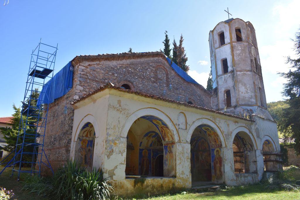През 1946 г. църквата се срутва, като оцеляват само западната стена, нартексът и екзонартексът. Възстановяването ѝ е извършено през 1951 г. Оцелелите стенописи в храма са от 1840 г. и са дело на известния тревненски зограф Кръстю Захариев и синовете му. Иконите са създадени от тревненския художник Петре Минюв и Захари Зограф.