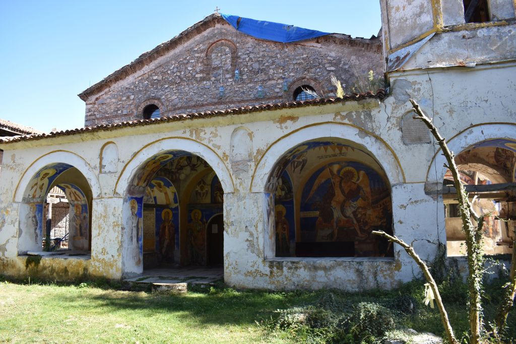Висок каменен зид и големи двуетажни жилищни сгради с открити чардаци ограждат двора, в средата на който се издига съборната църква. Освен този, манастирът има и друг, стопански двор. Към комплекса се числи и намиращото се в близост аязмо. За разлика от другите манастирски църкви в региона, съборният храм тук е безкуполен и с обширен нартекс. Достолепен вид му придава екзонартексът и камбанарията, долепена до него.