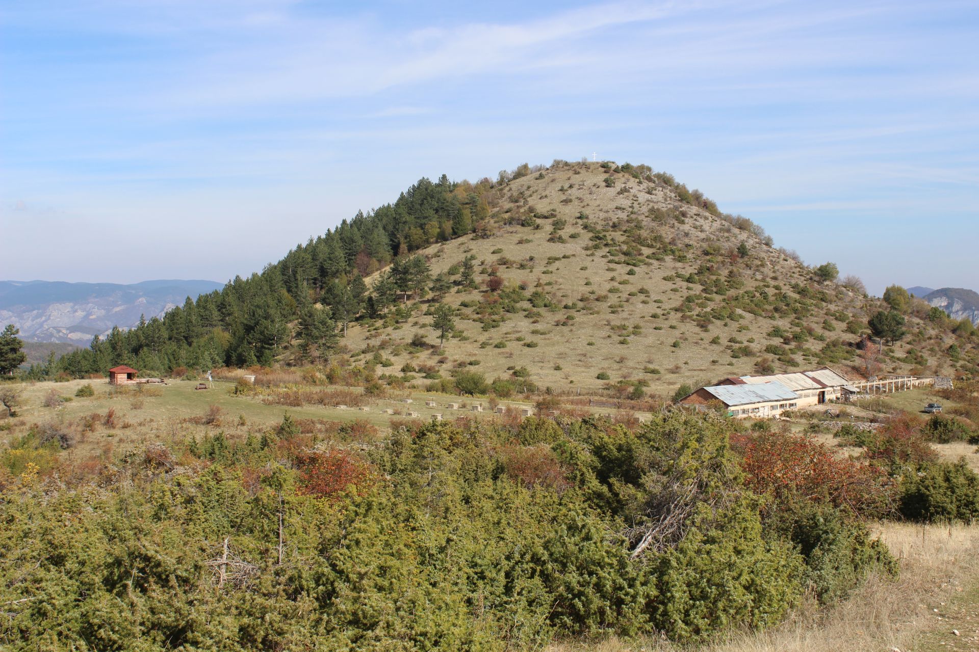 Следват нови 800 м с леко изкачване и вече сте в подножието на връх Могила. Тук има голяма беседка и информационна табела. От тук до върха следват 500 м с най-сериозното изкачване. Можете да се движите без да търсите пътека, защото големия метален кръст на върха през цялото време е ваш ориентир.