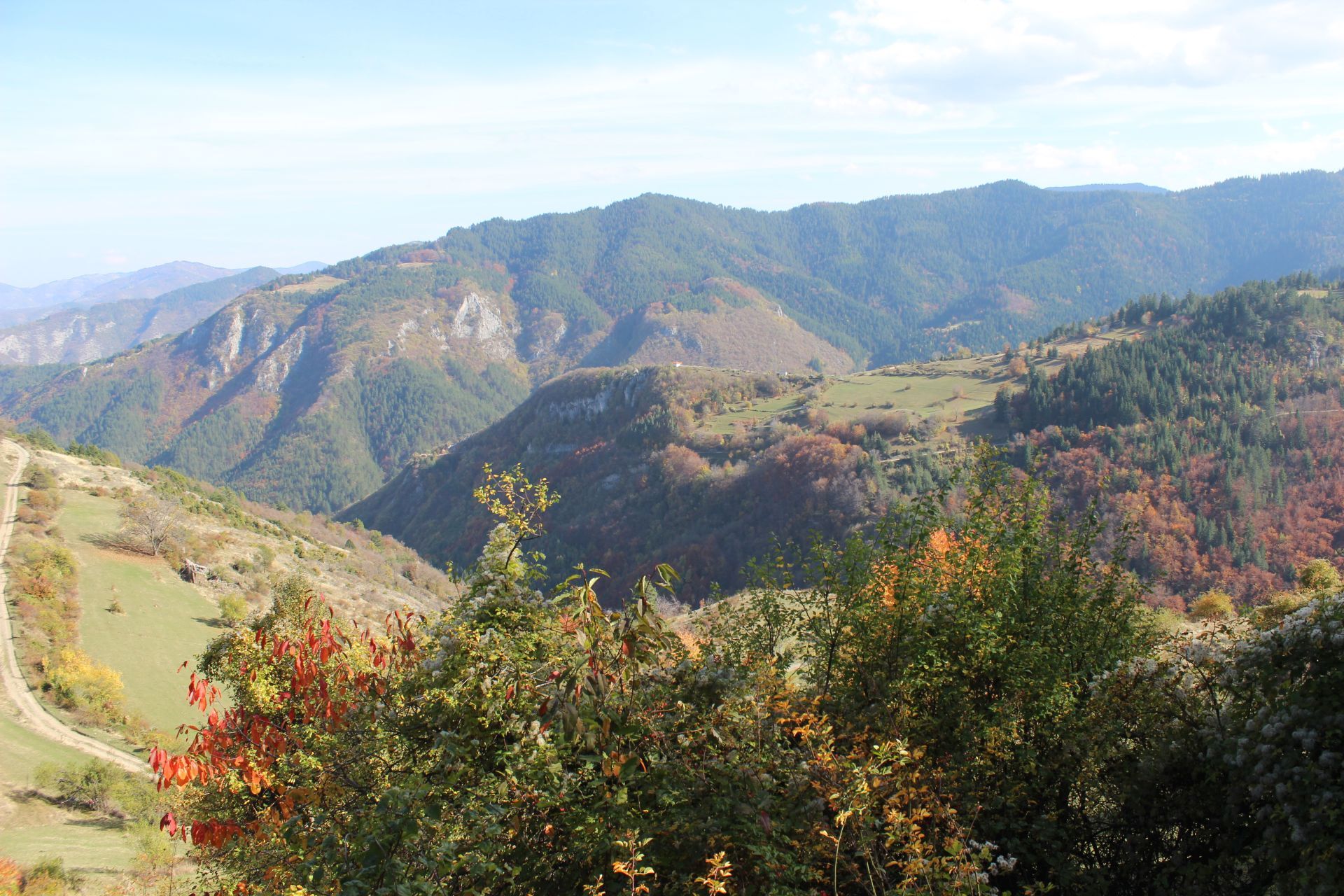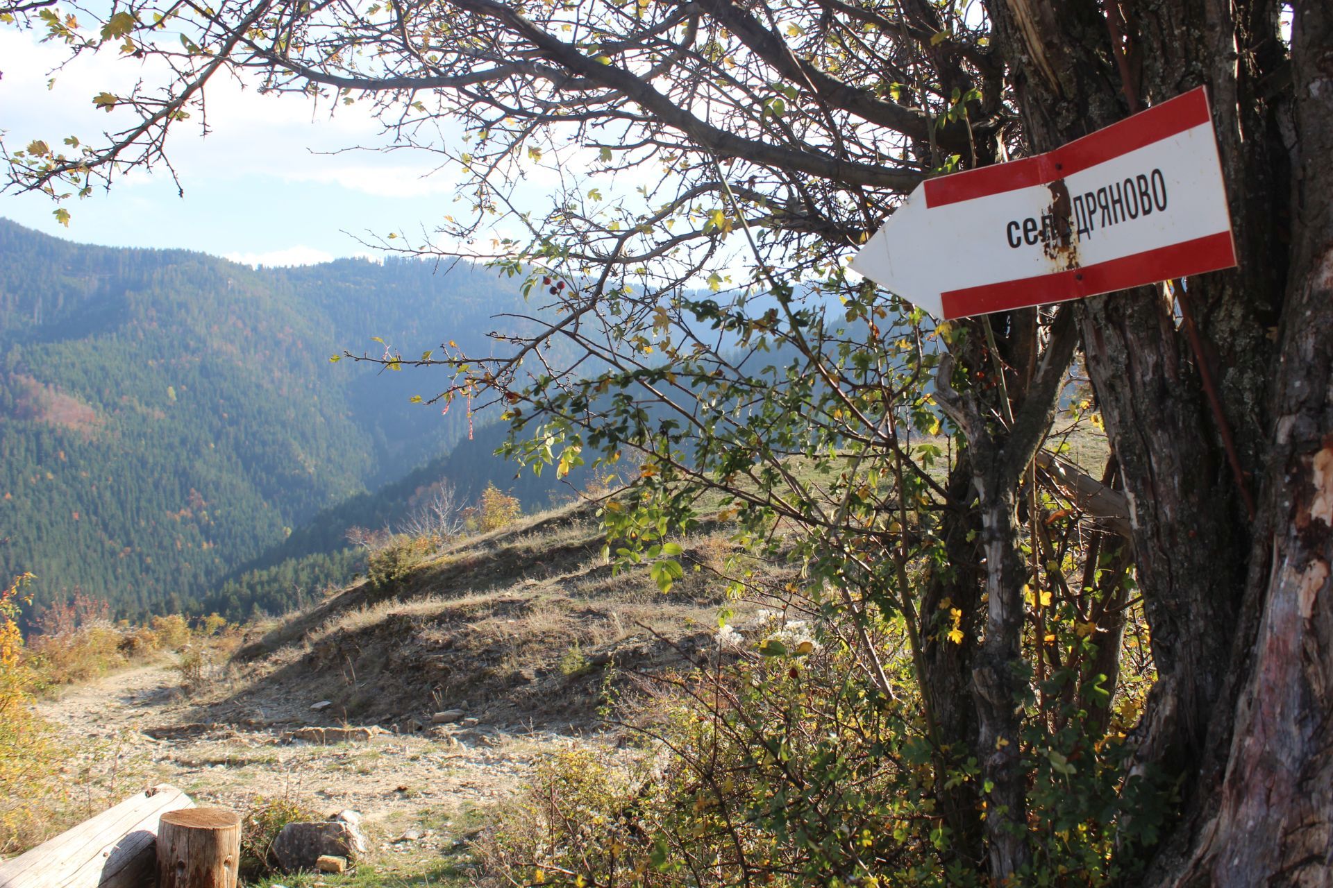 Тръгвайки по маршрута след около 300 м, в които все още сте на асфалтов път, стъпвате на път с трошено-каменна настилка, който прави голям и плавен ляв завой.