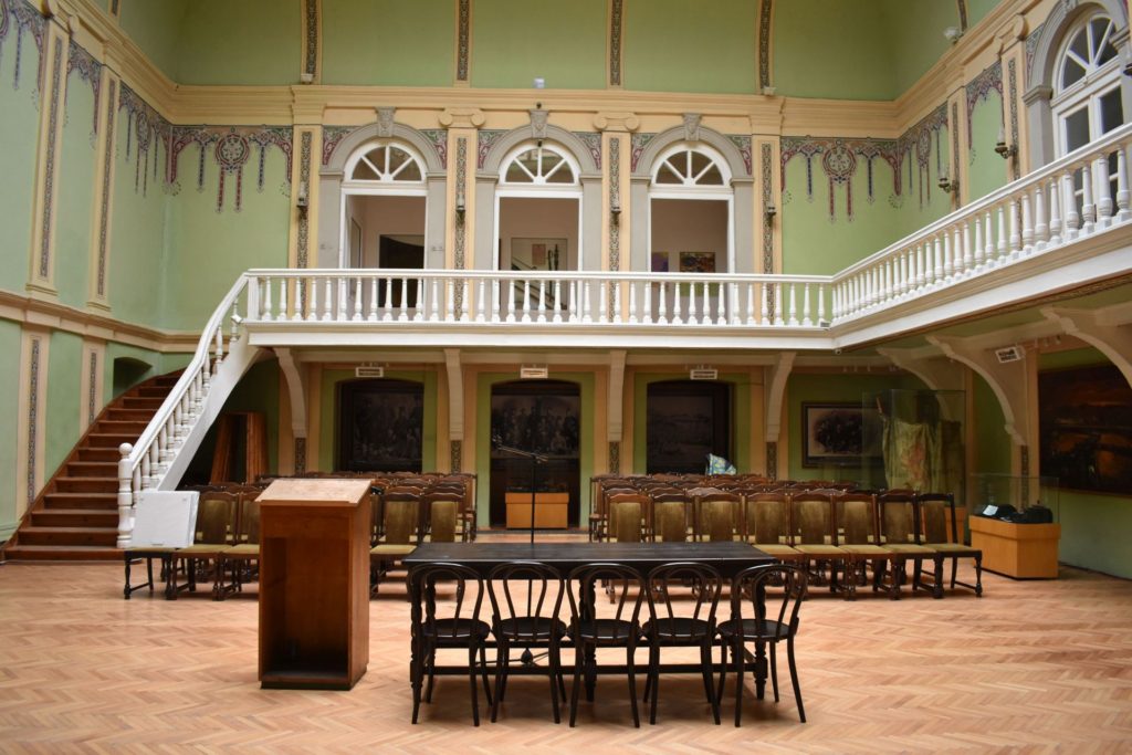 Централната административна сграда на музея, в която се помещава експозицията „Съединение на България 1885 г.“ е запазена в автентичния си вид от построяването и в периода 1883-1885 г. Построена първоначално с идеята да е Областно събрание на Източна Румелия. От 1886 г. тук се помещава Пловдивската народна библиотека.