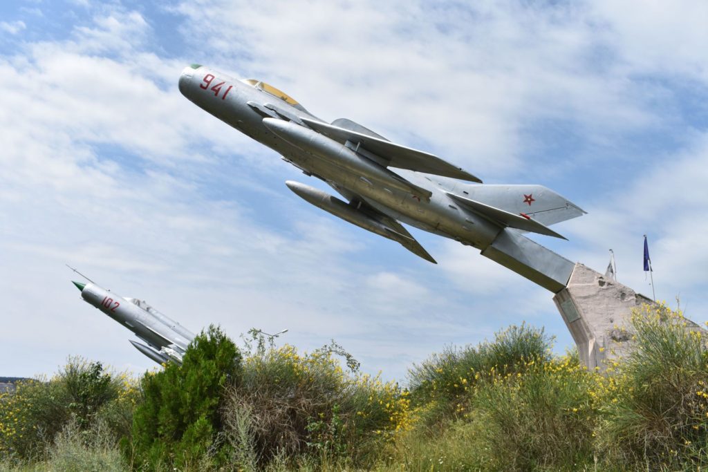 Пространството е добре поддържано, а трите вида самолети, които може да видите МИГ-19, МиГ-21 и СУ, са пилотирани от нашия космонавт. За всеки един от експонатите може да видите информационна табела с персонални характеристики.